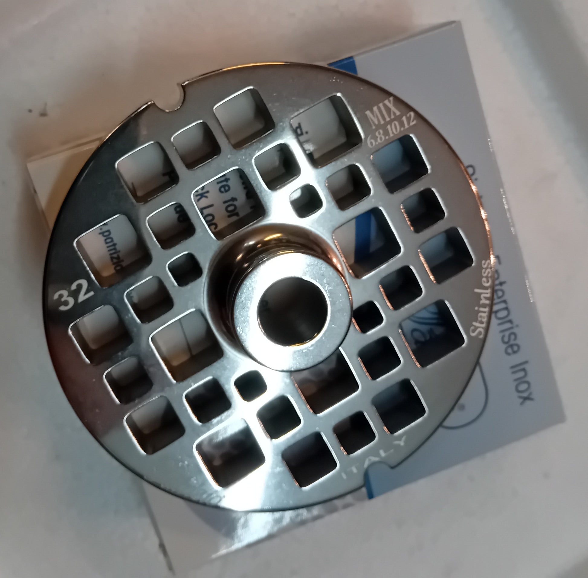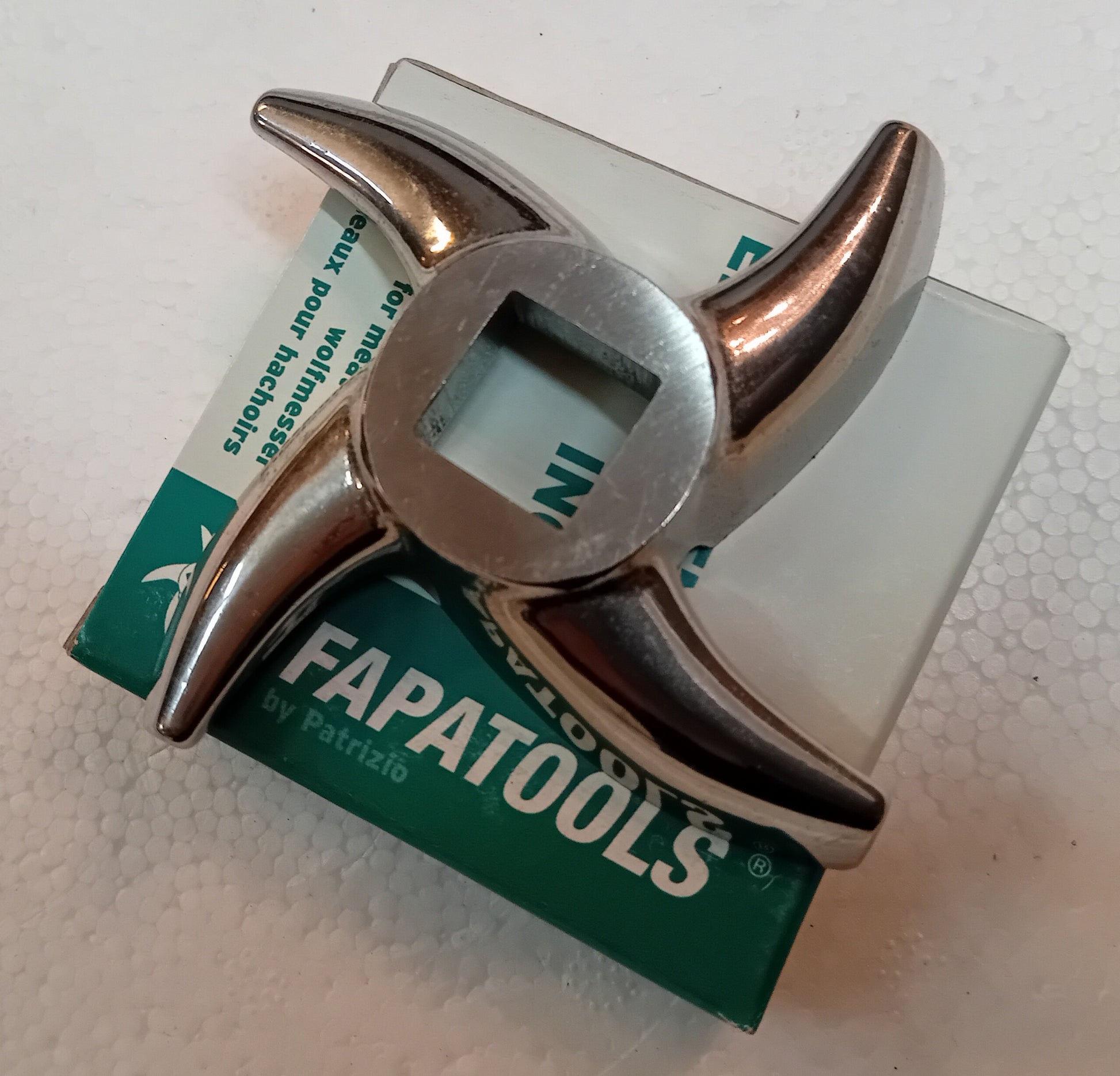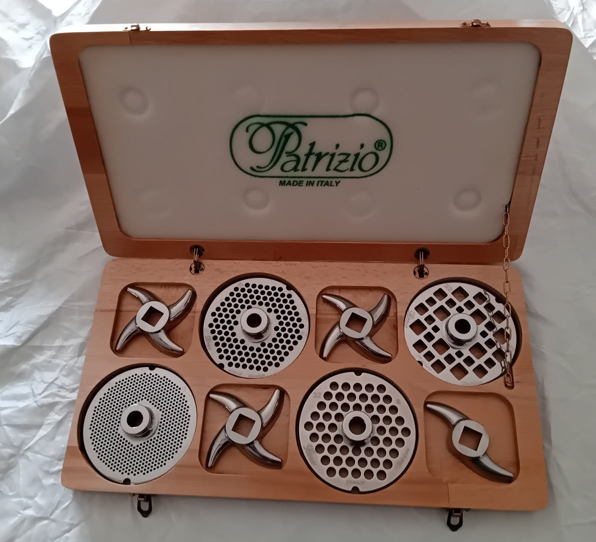 4 Coppie tritacarne inox mod. 32 "Gourmet" in cassetta legno Patrizio