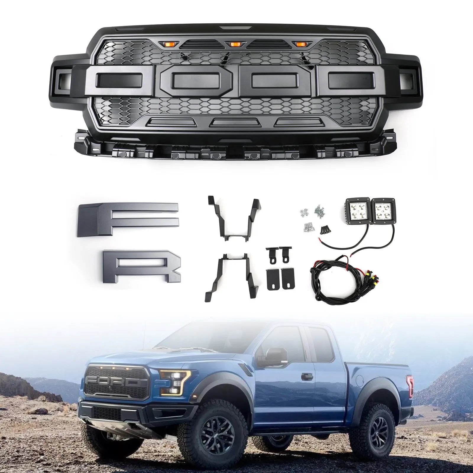 Honeycomb grill amber led raptor style grill grille for ford f150 f-150 2018 2019 2020 with logo