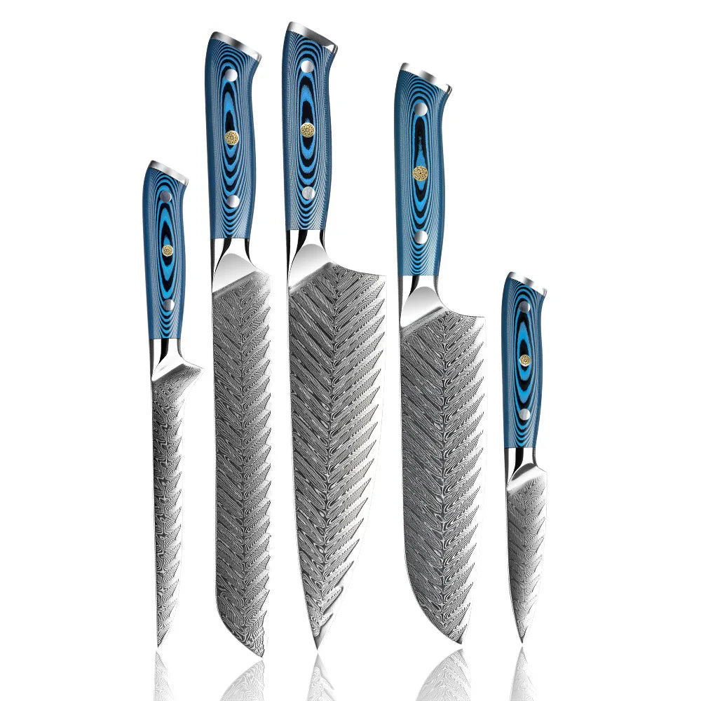 Amber blue handle pakkawood custom logo sharp 5pc cooking kitchen knife set chef knife set japanese knifes set