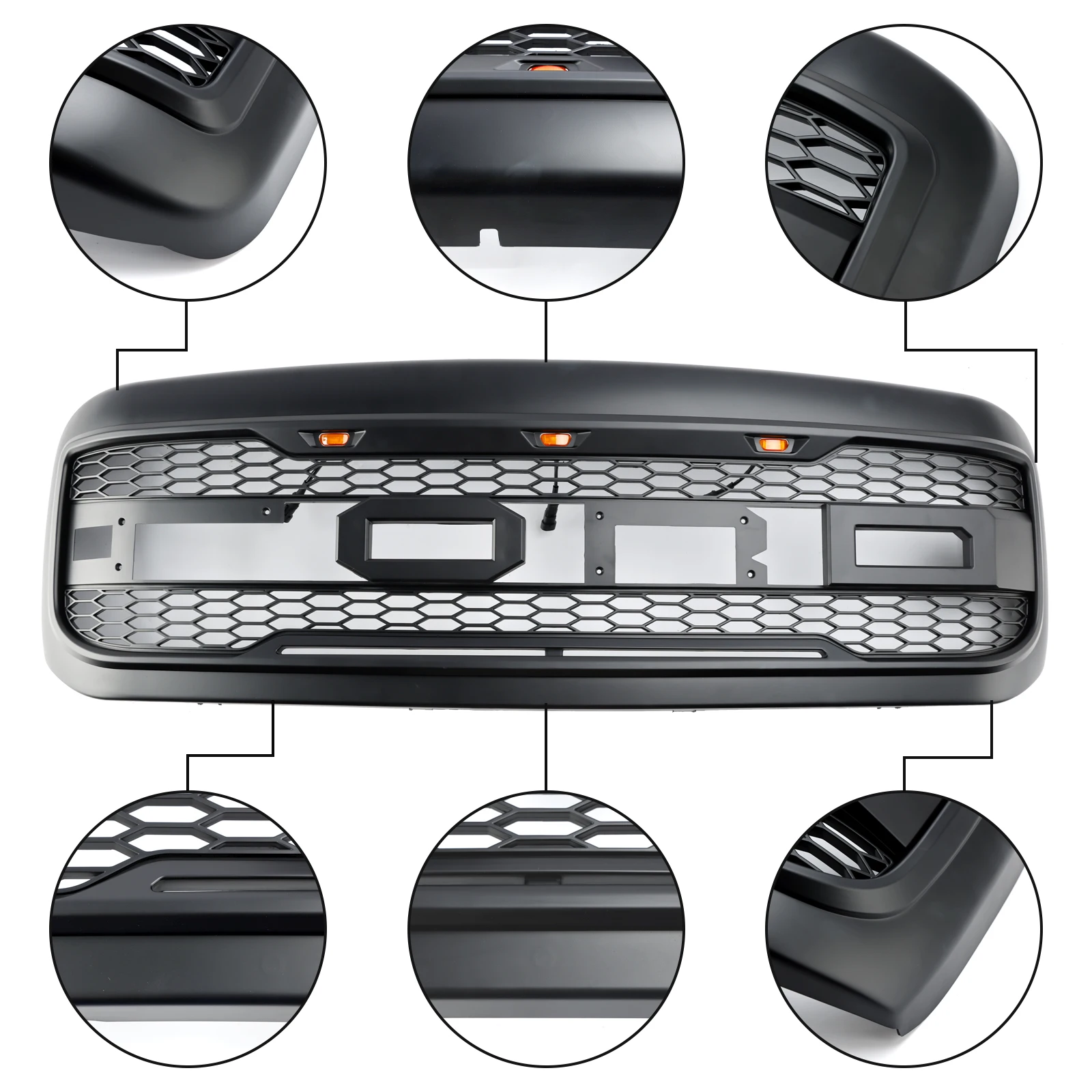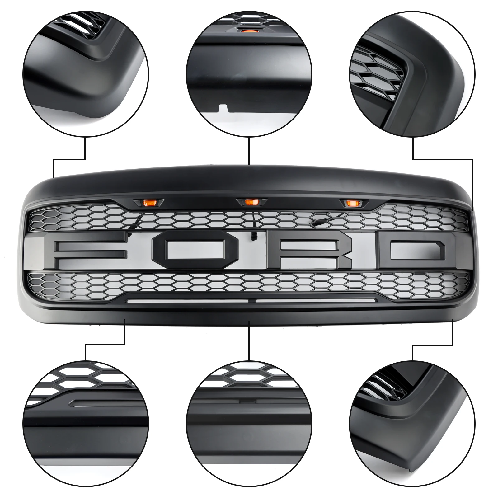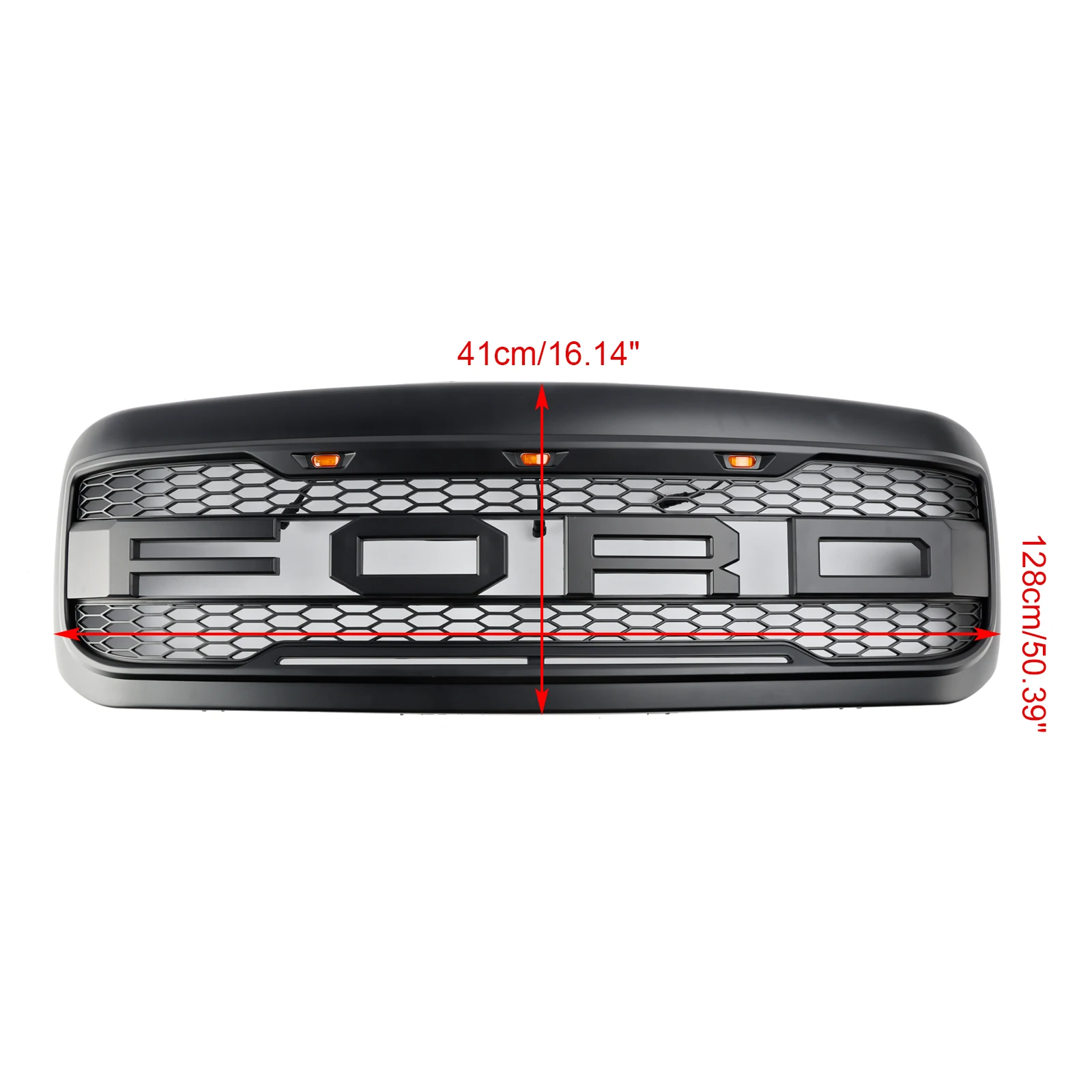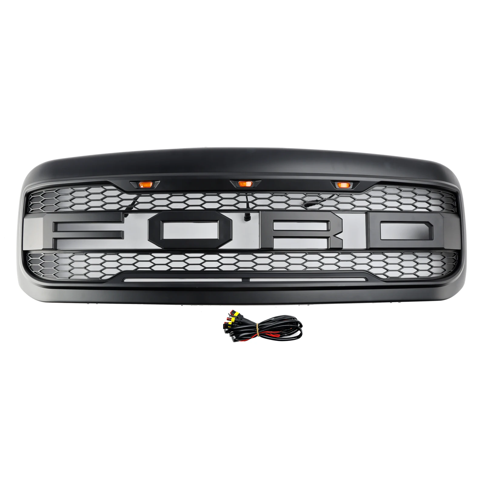 1999-2004 F250 F350 F450 F550 Excursion for Ford Raptor Style Grill Replacement Super Duty Black with Letter