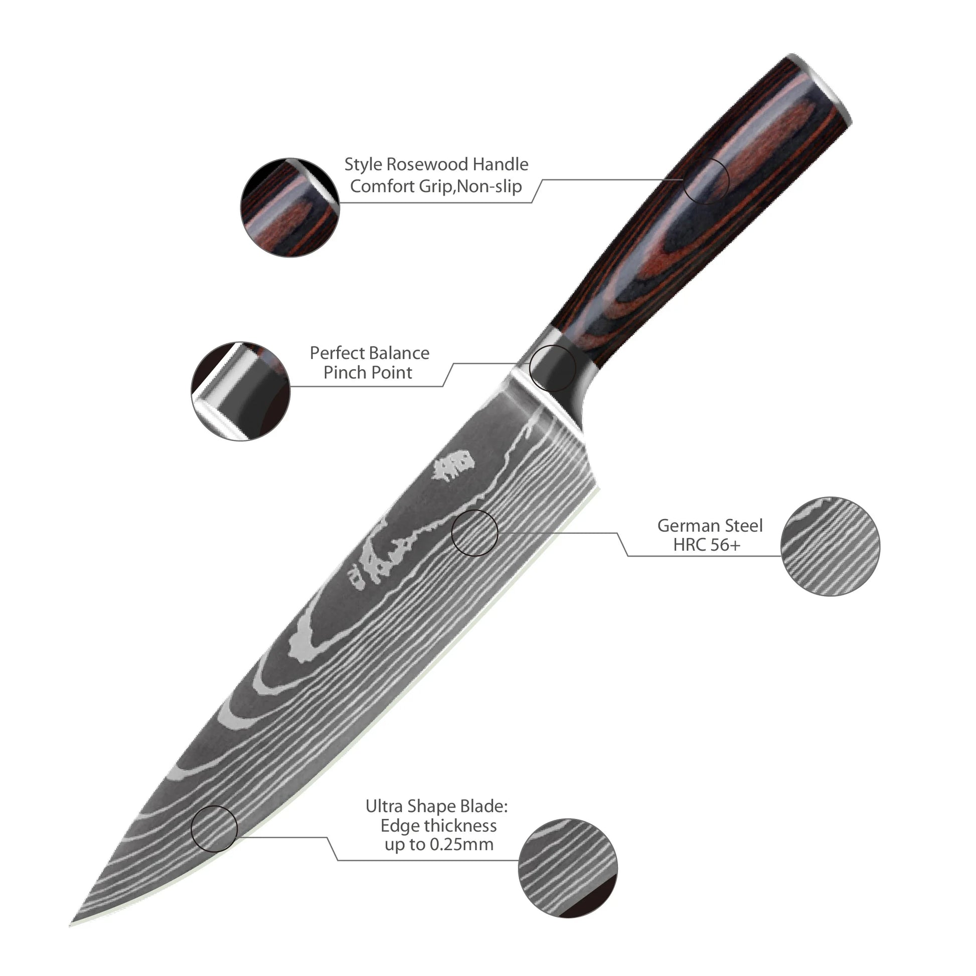 2021 New Design 5Cr15MoV Kitchen Knife Set with Premium Pakkwood Handle Chef Knife