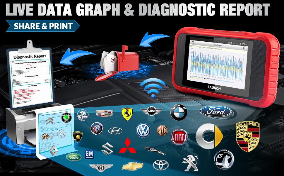 • TPMS Reset: Launch crp129e looks up the tire sensor IDs from the vehicle’s ECU, and performs TPMS sensor relearn procedures after tire sensors are replaced.