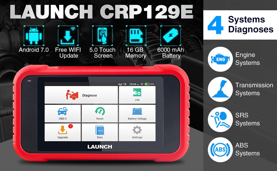 •Four systems diagnostic: Launch crp129e diagnostic tool read and reset Engine, Transmission, ABS and SRS system, turn off the warning light related.