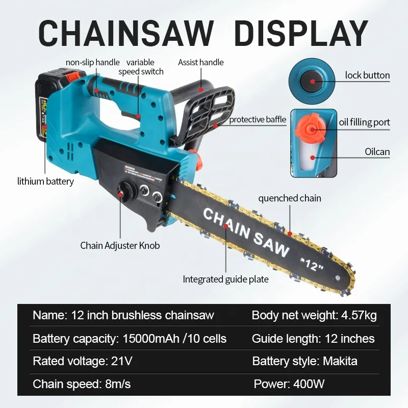 2025 DTW-SAW10215 725W 12 Inch Chain Electric Tree Saw