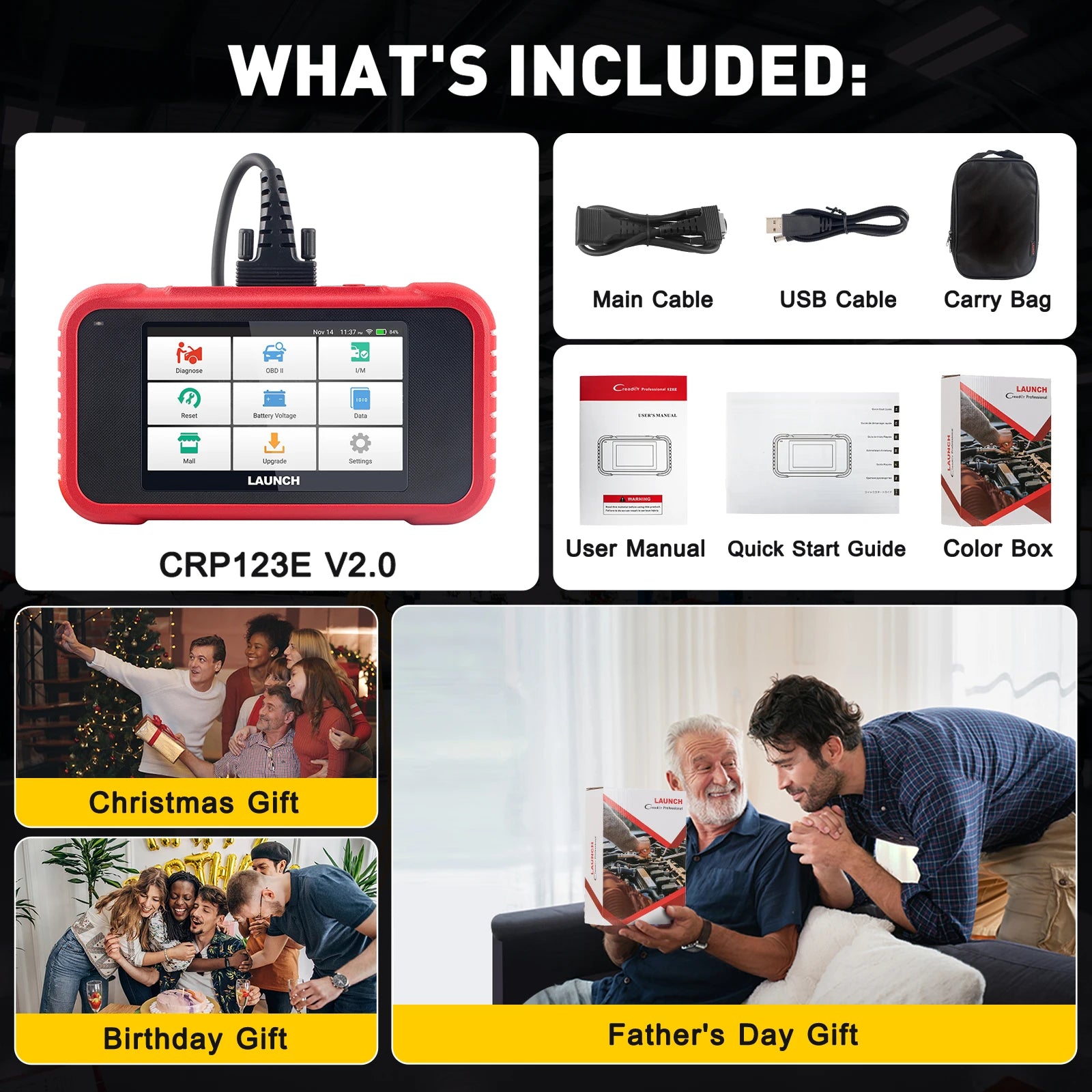 2025 Launch CRP123E V2.0 Elite OBD2 Scanner Diagnostic Tool Engine ABS SRS Lifetime Free Same As CRP123X 2.0