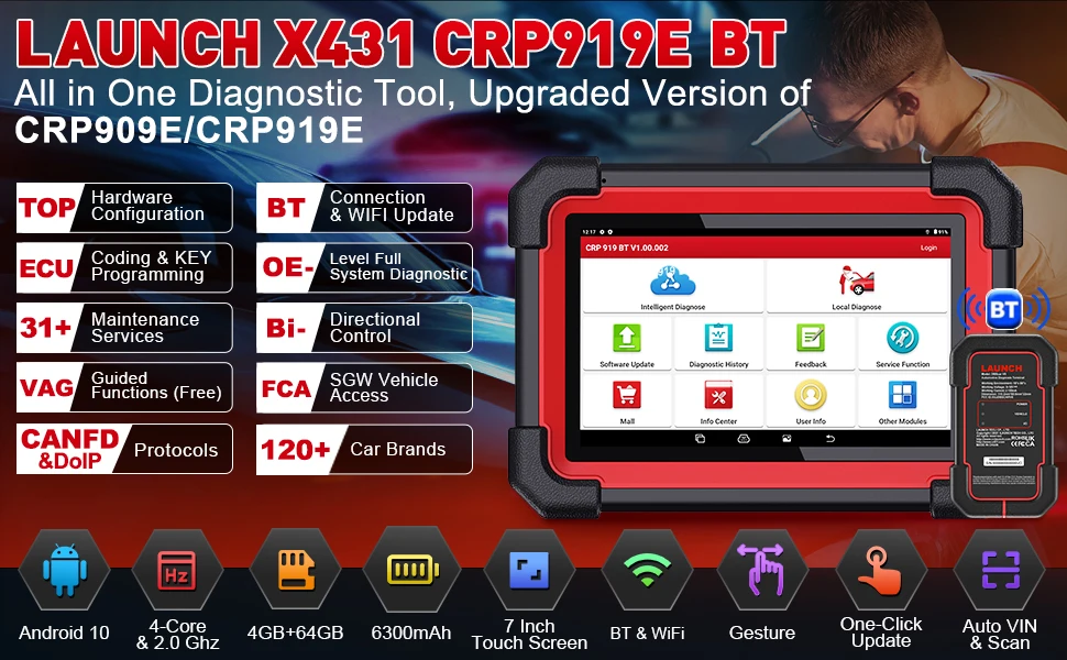 2025 Launch X431 CRP919E BT Automotive Scanner Engine All System OBD2 Diagnostic Tools 31 Resets Lifetime Free Update