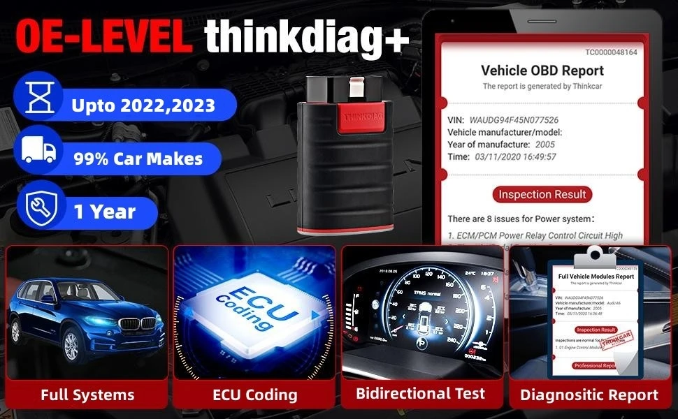 2025 Thinkdiag Hot Version Full System All Car 16 Reset Service OBD2 Diagnostic Tool ECU Coding Active Test 1 Year Free