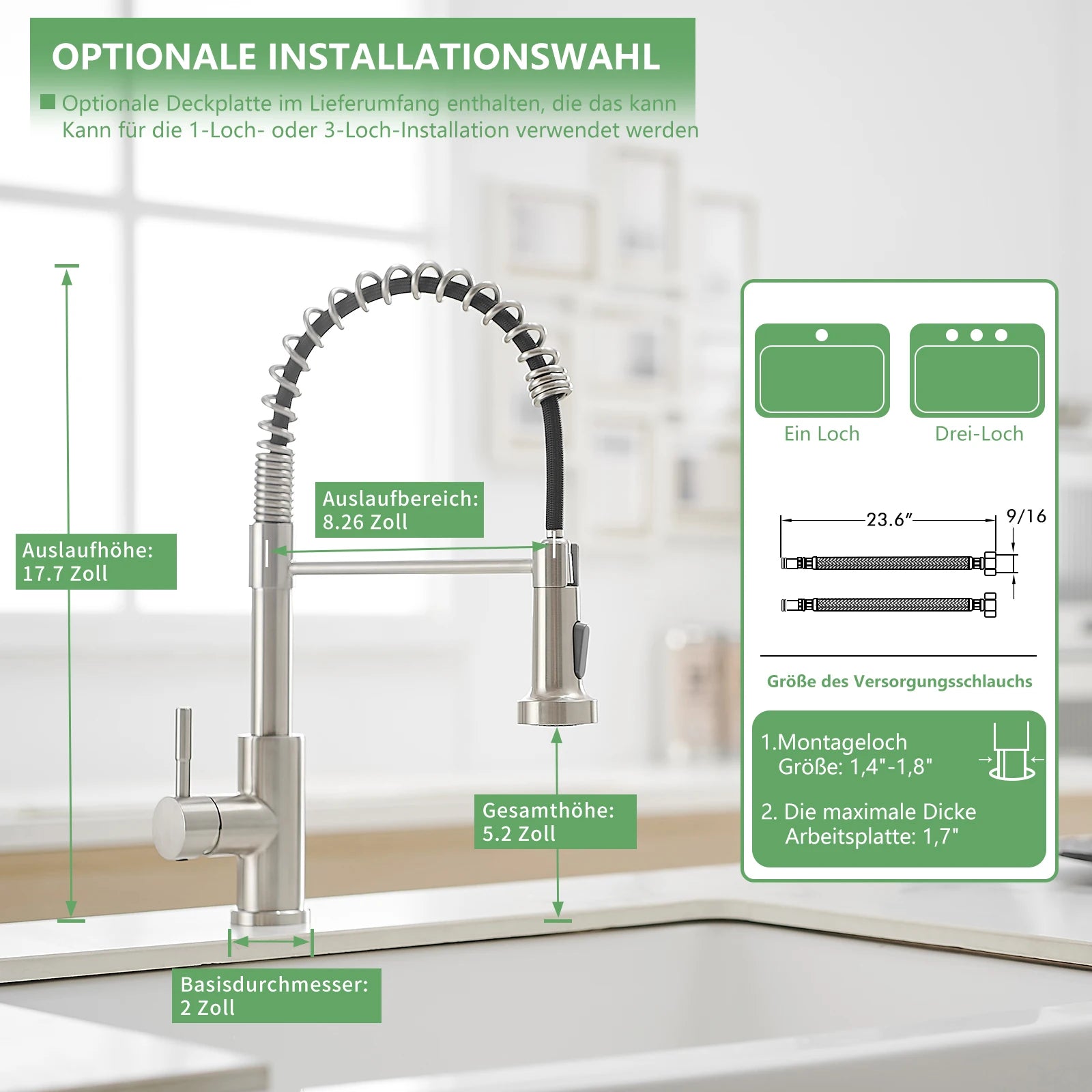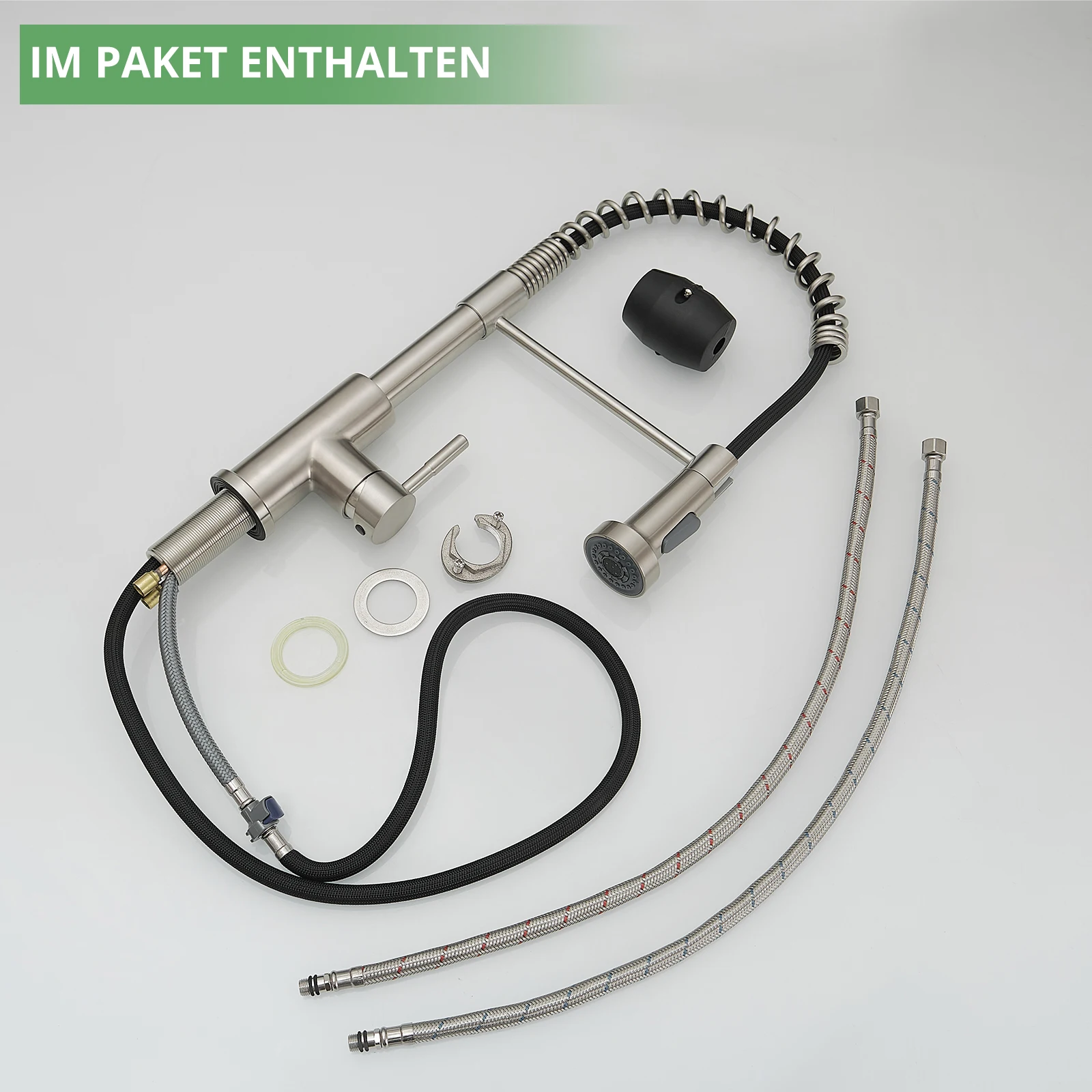 304 Stainless Steel Single Handle Pull out Kitchen Sink Faucet Brushed Nickel Sprayer Classic Modern Design for Hot Cold Water