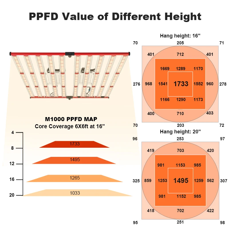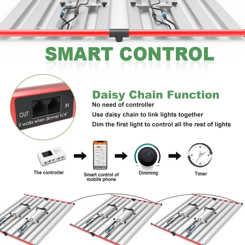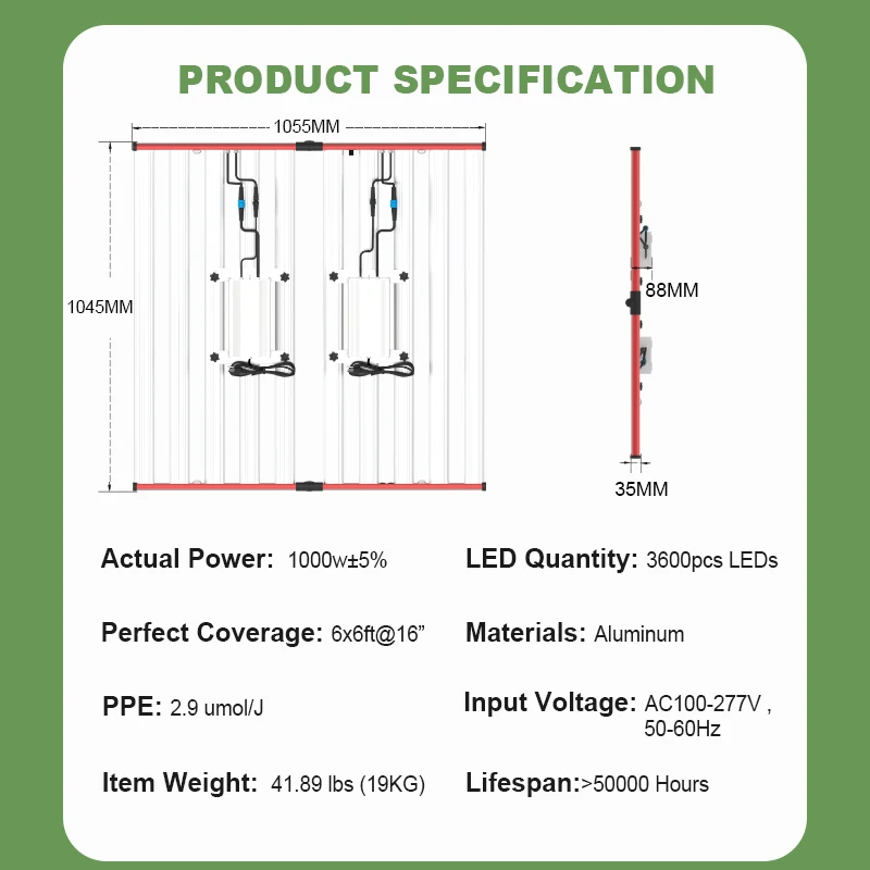 1000W led grow light, with 10 bars. Product size: 1050x1050x52mm
