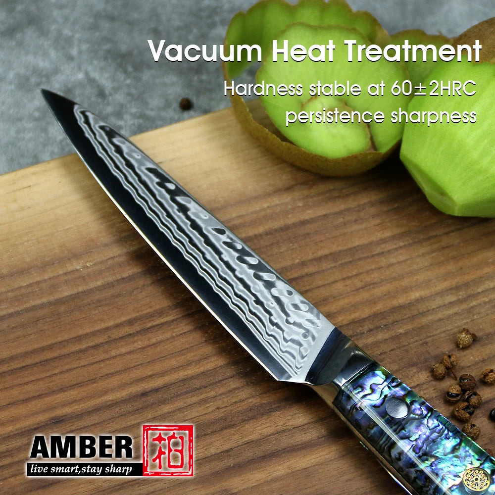 Amber 5 Inch Damascus 45 Layers Utility Knife with Abalone Handle