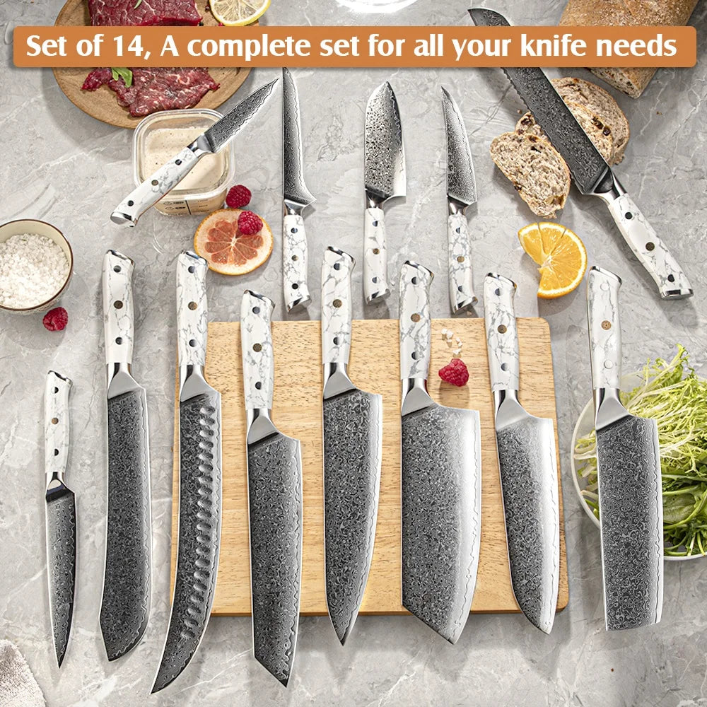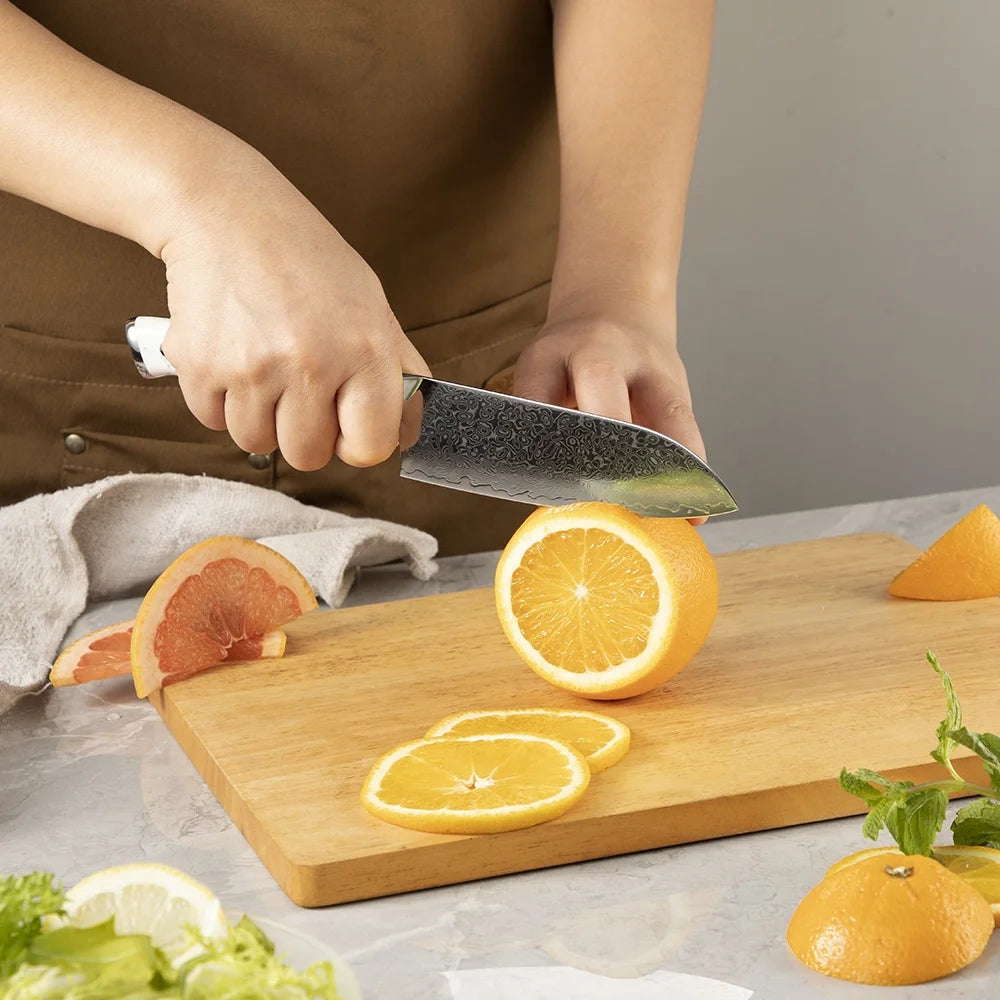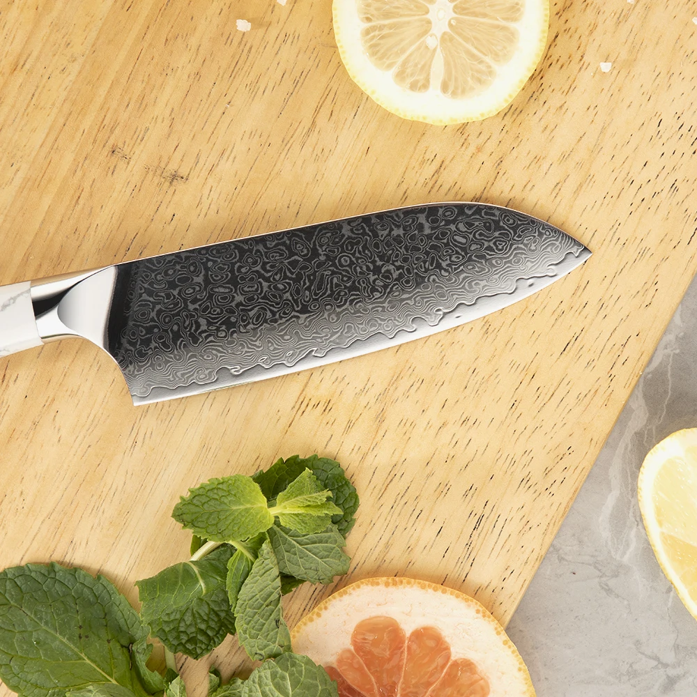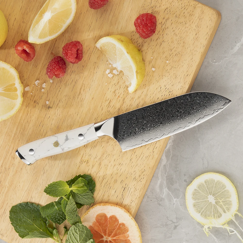 Amber Custom White Turquoise Stone Handled 5inch VG10 Damascus Steel Mini Santoku Chef Knives with Kitchen Knives Santoku |