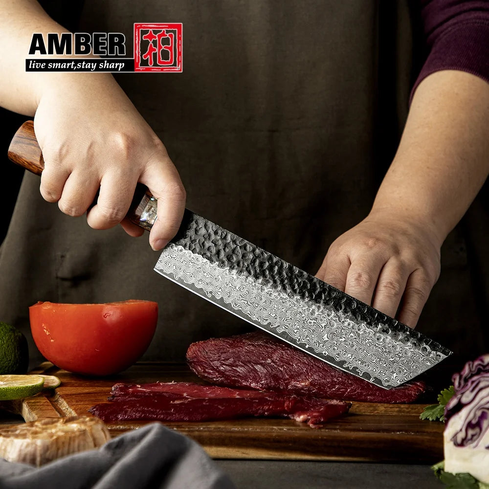 Amber Handcrafted 89 Layers Damascus Forged Blade Japanese Nakiri Knife Brass USA Desert Ironwood Handle
