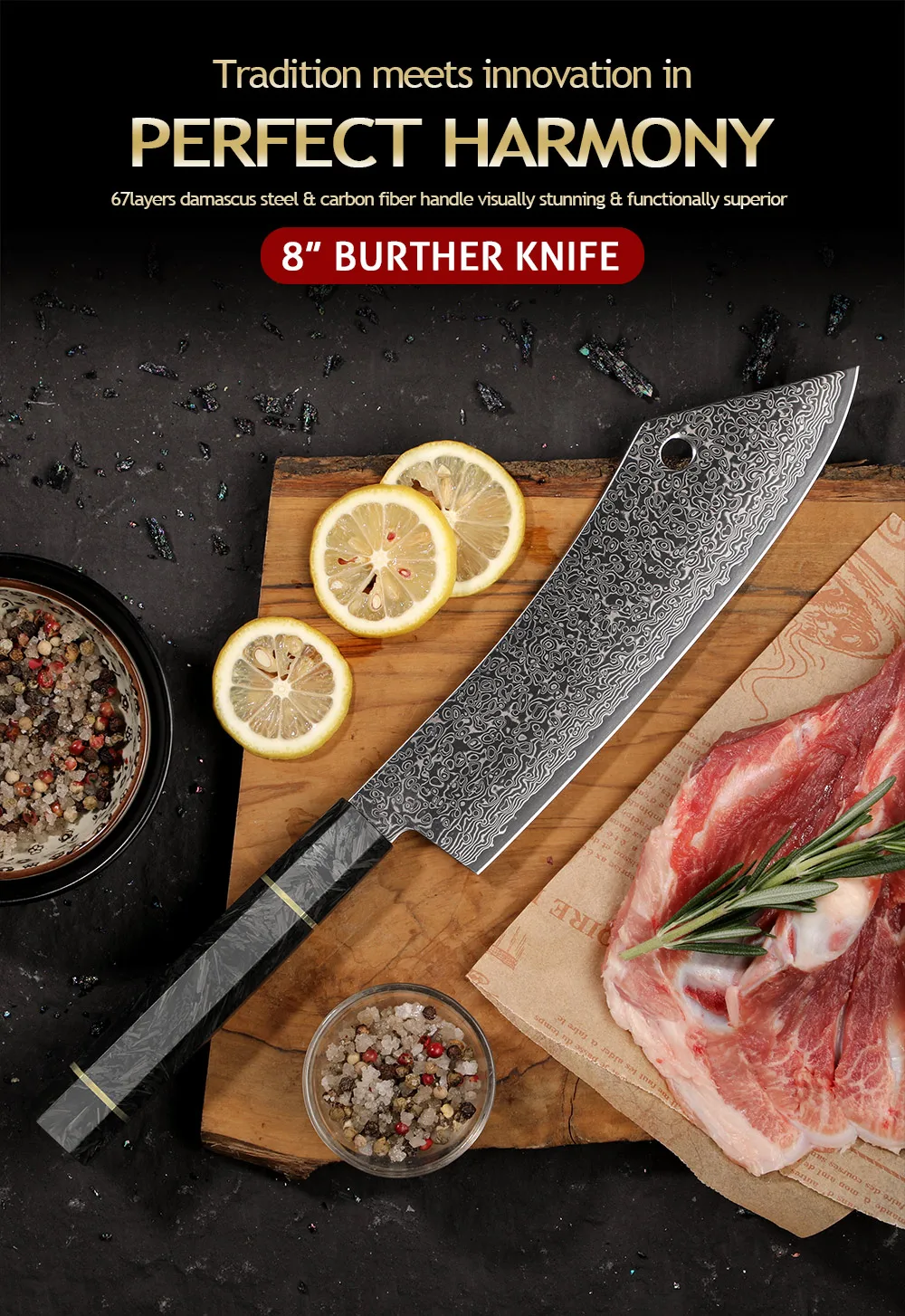 Amber Carbon Fiber Handle 67 layers vg10 Japanese Damascus Butcher Chef Kitchen Knife for Japanese |
