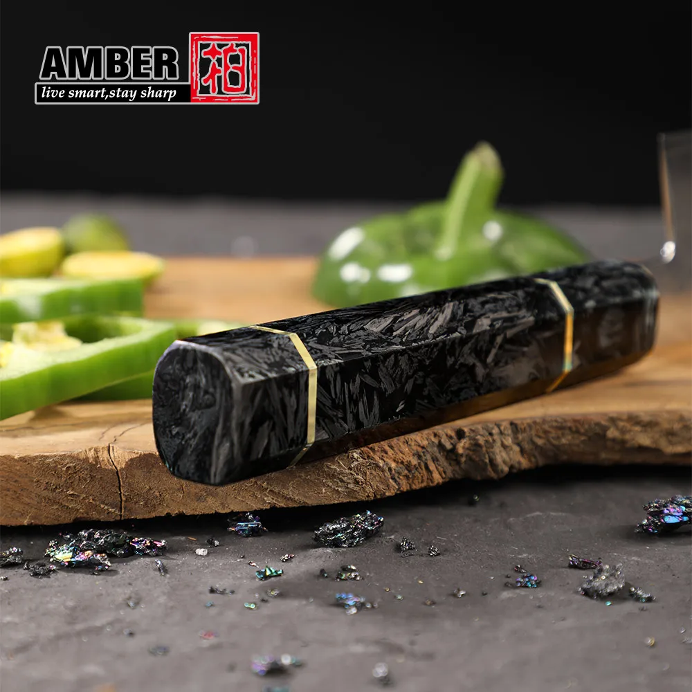 Amber Manufacturer Carbon Fiber Handle 67 Layers Vg10 Japanese Damascus Butcher Chef Kitchen Knife for Japanese