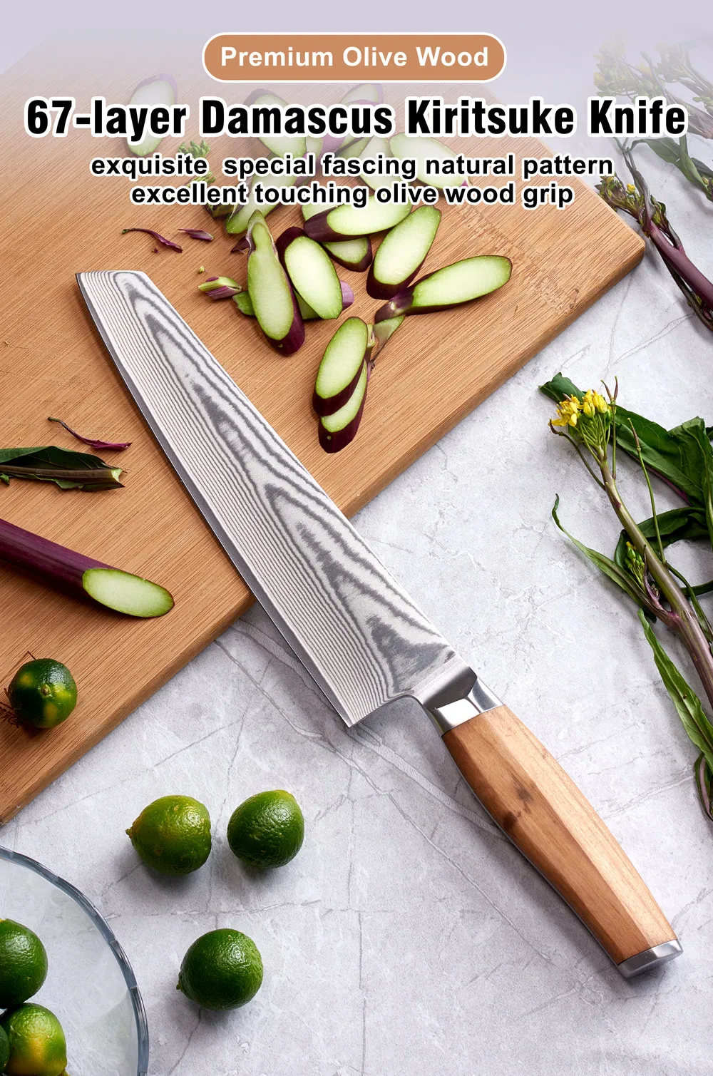 Amber Olive Wood Handle 67layers Damascus Kitchen Knife Damascus Chef Knife Vg10 Damascus Knife
