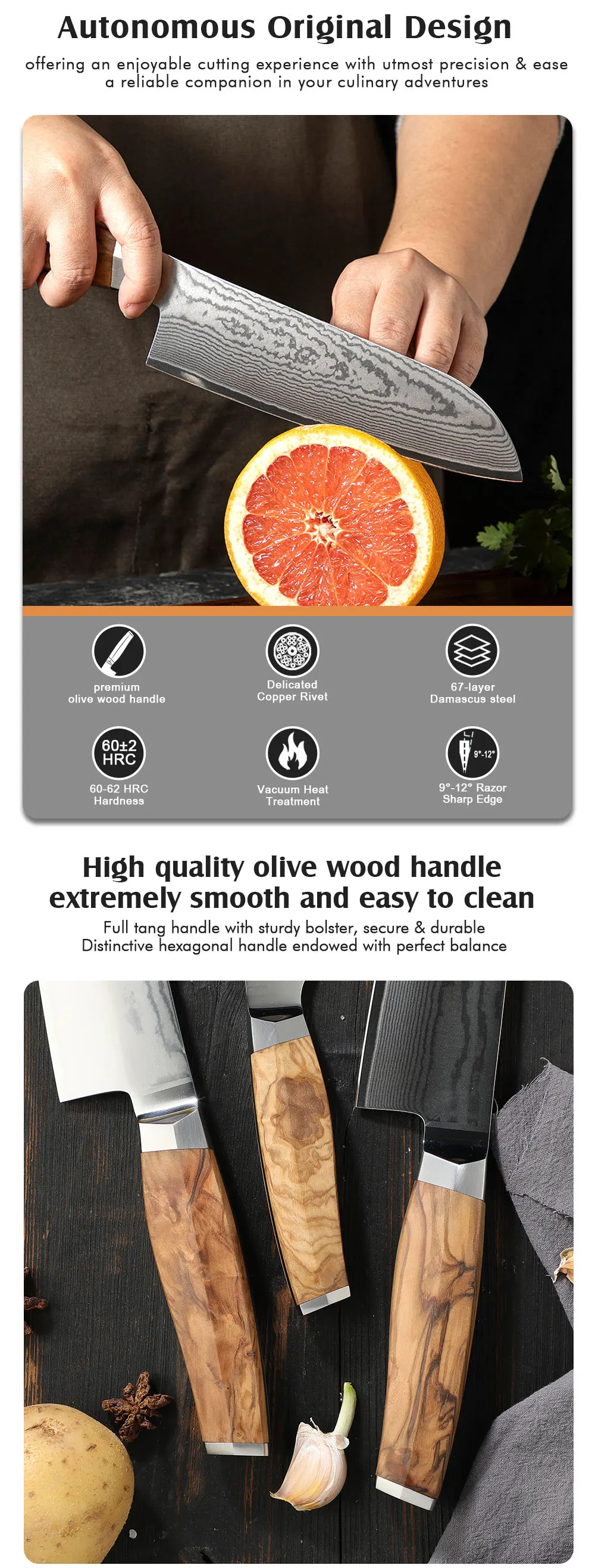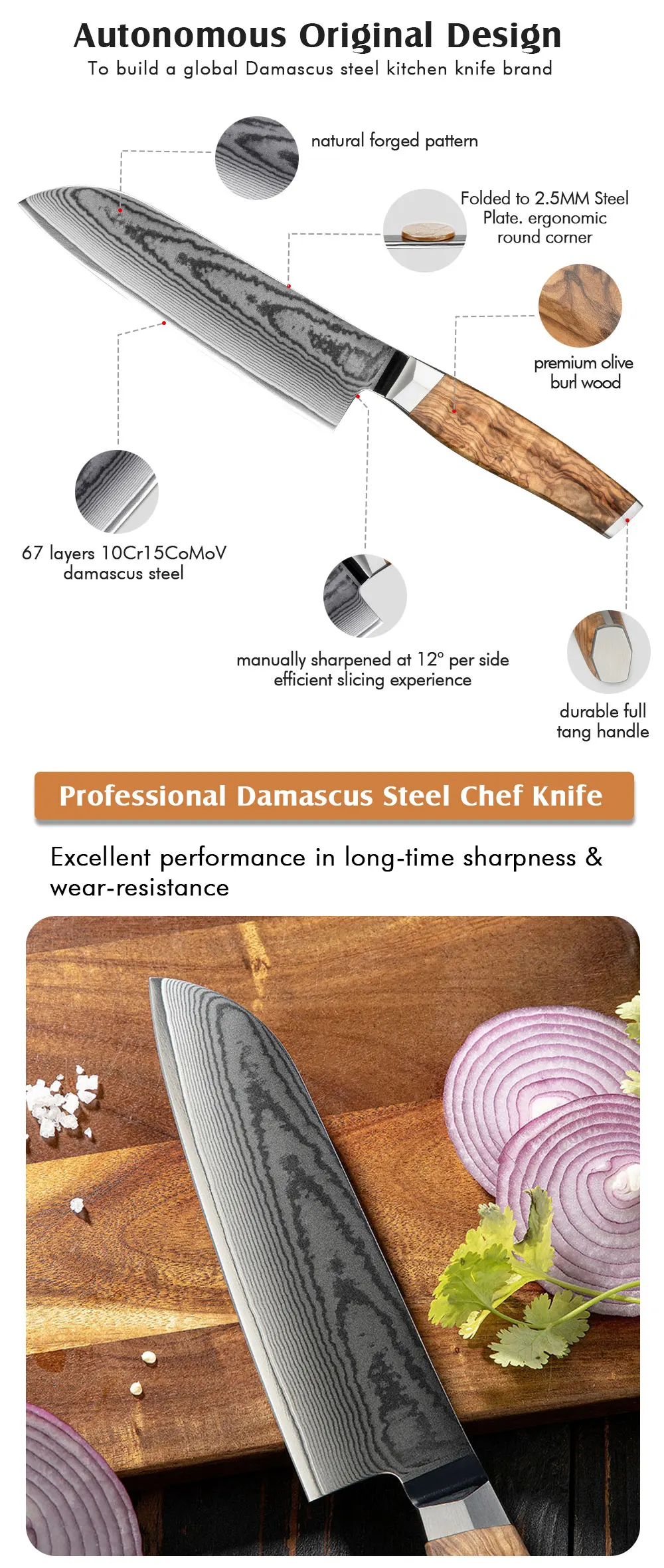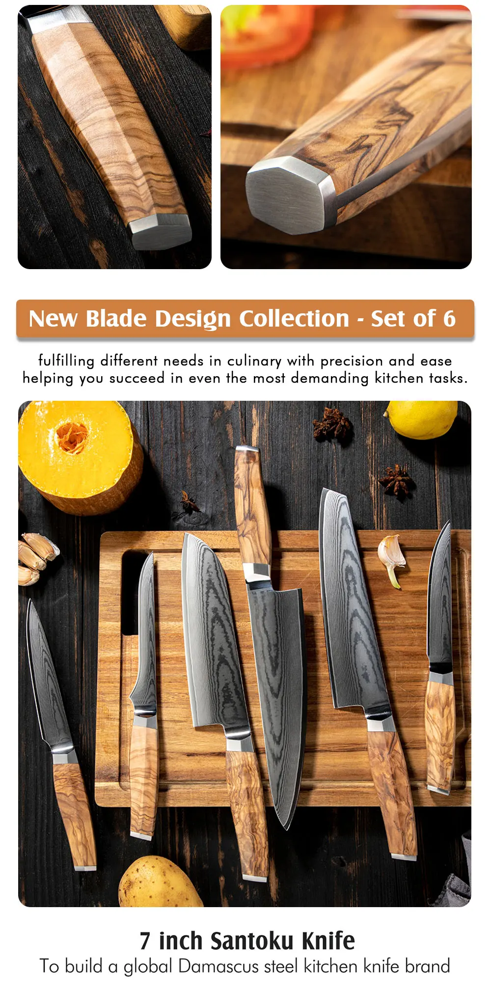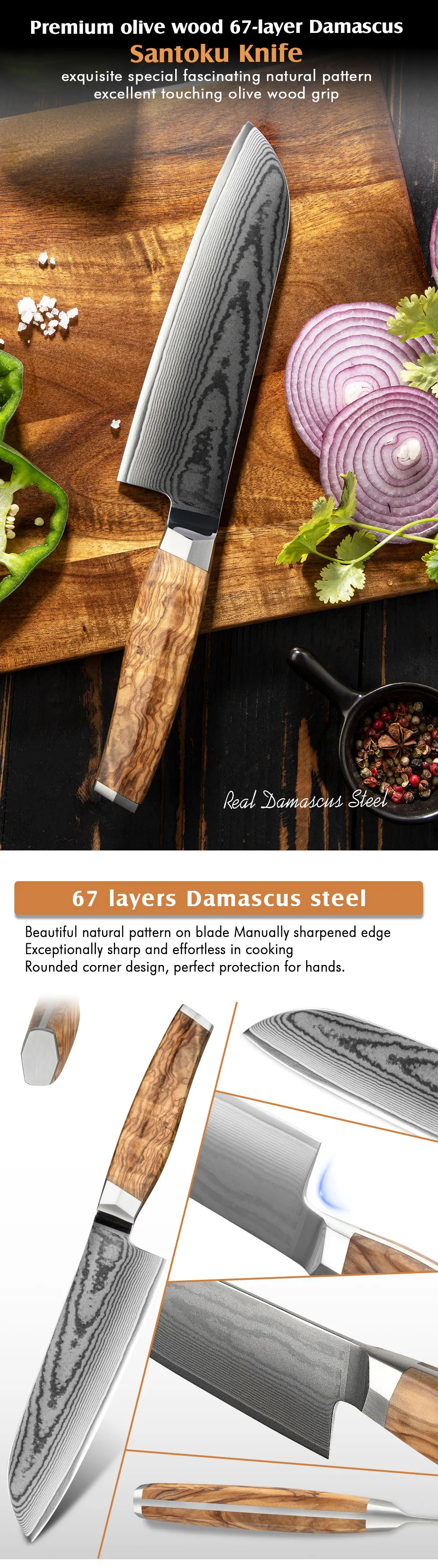 Amber Olive Wood Handle 7inch Santoku Japanese Knife Damascus Santoku Knife Chef Knife Santoku