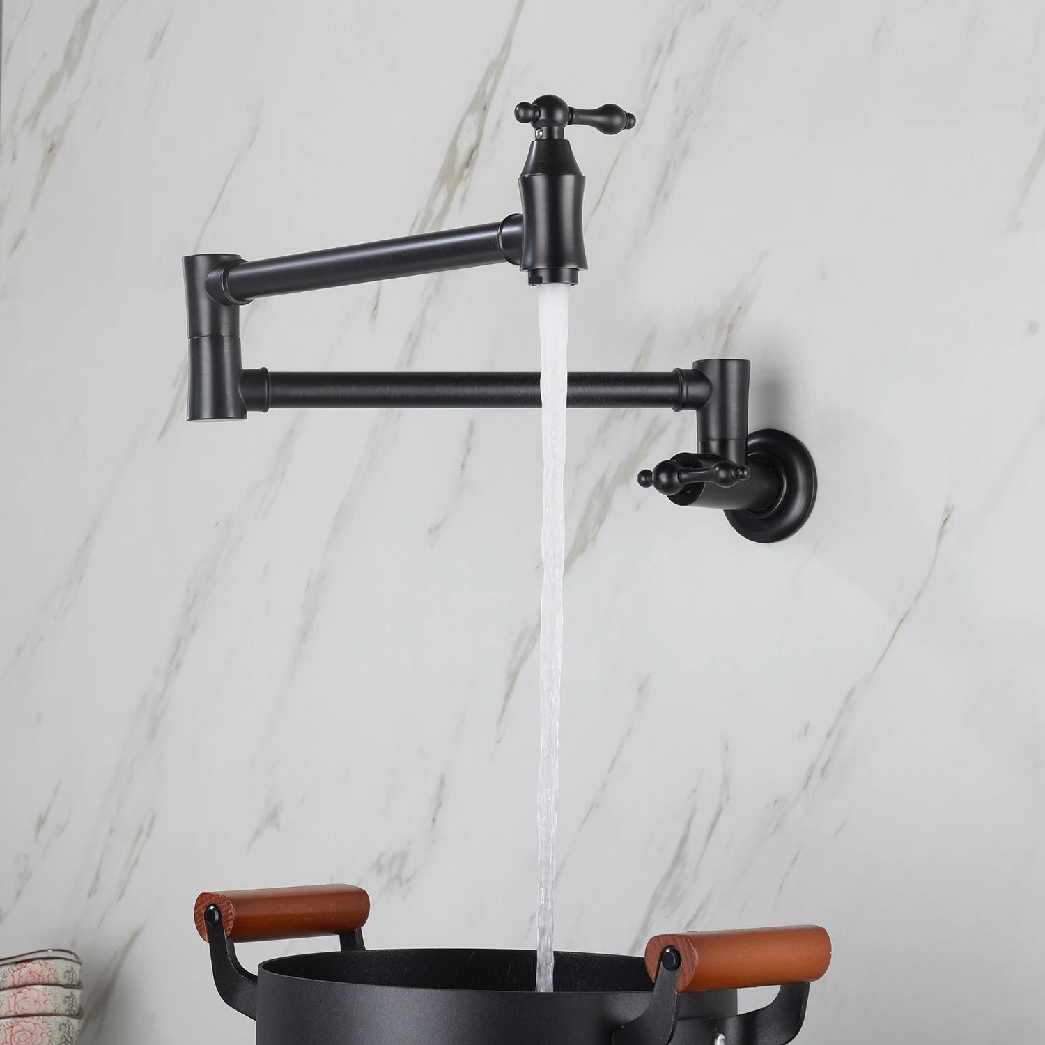 American Style Modern Wall Mounted Kitchen Faucet Black Brass Fold Tap Pot Filler Retractable Folding Contemporary Design