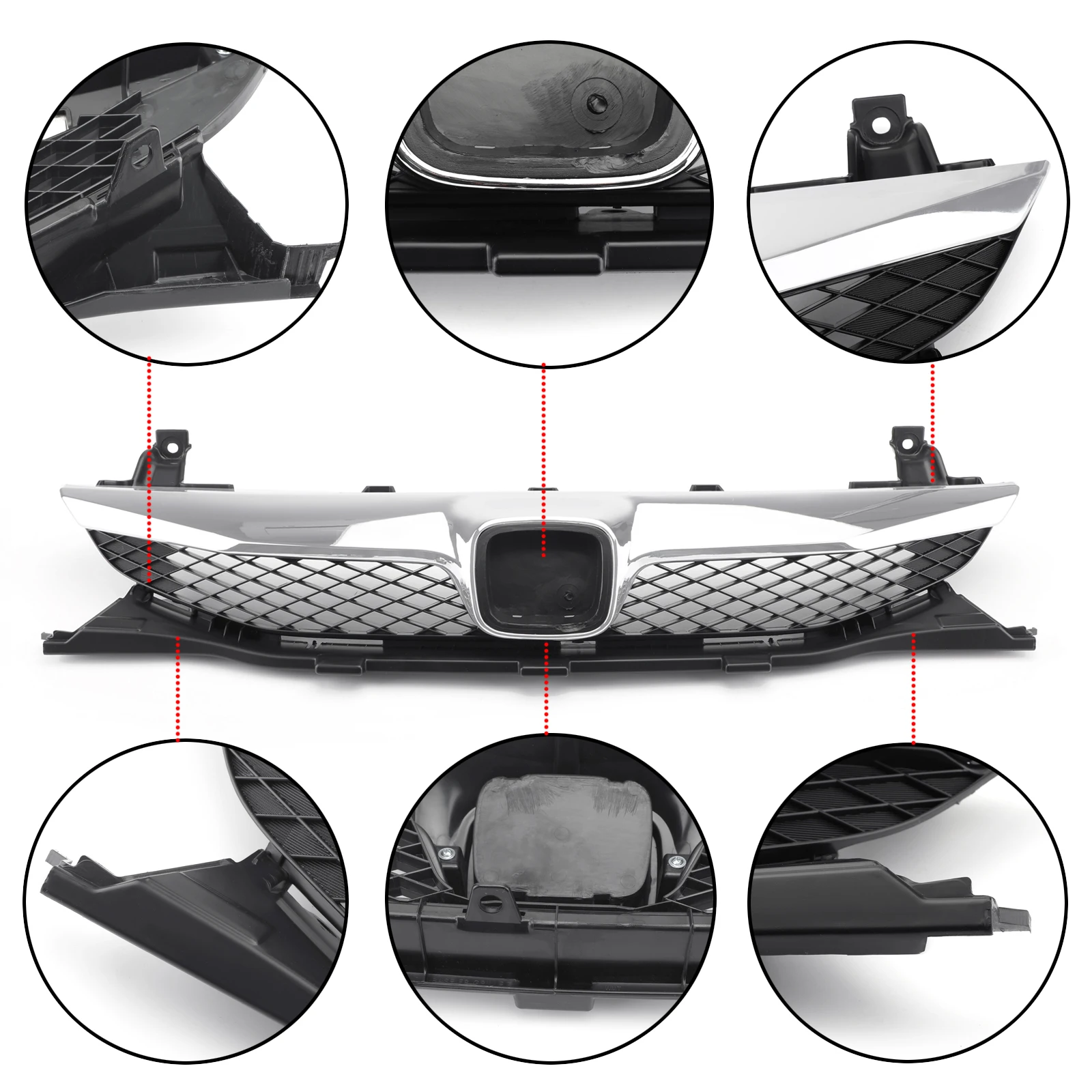 Areyourshop Front Bumper ABS Grille Grill Replacement for Honda Civic Sedan 4 Door 2009 2010 2011 With Logo