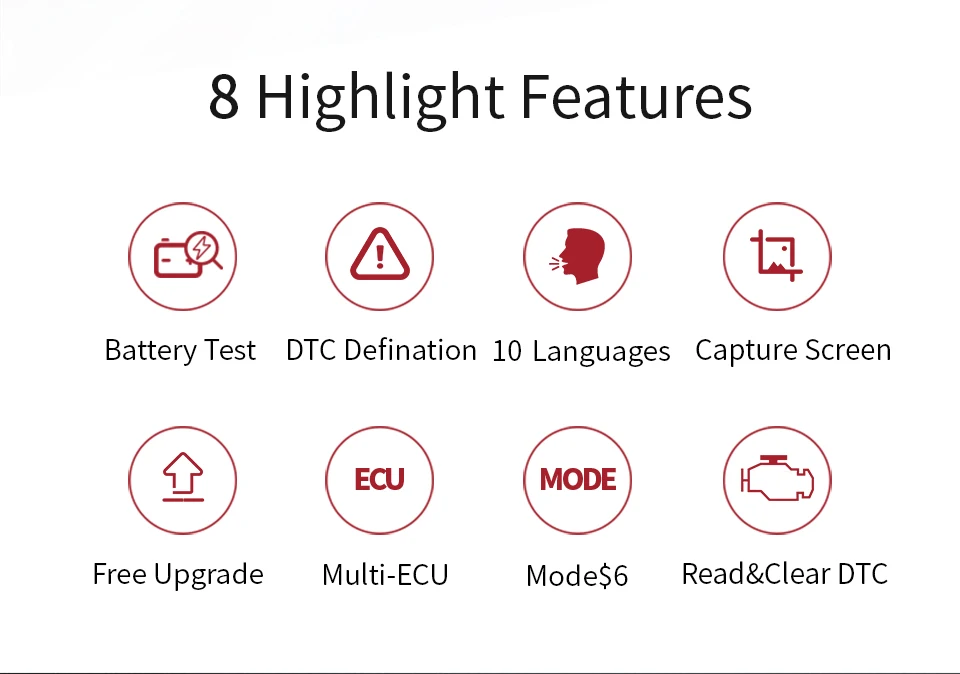 -☛Enhanced OBDII Diagnostic Functions:Read & Clear DTCs, I/M Readiness Status, Read Freeze Frame and Data stream, Read Vehicle