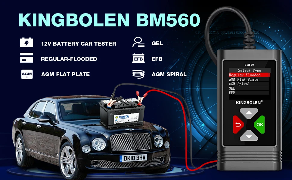 KINGBOLEN BM560 Car Battery Tester 6 Volt Battery 12 Volt Battery Analyzer Multi-language Circuit Battery load tester PK KW650