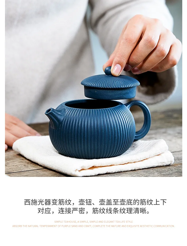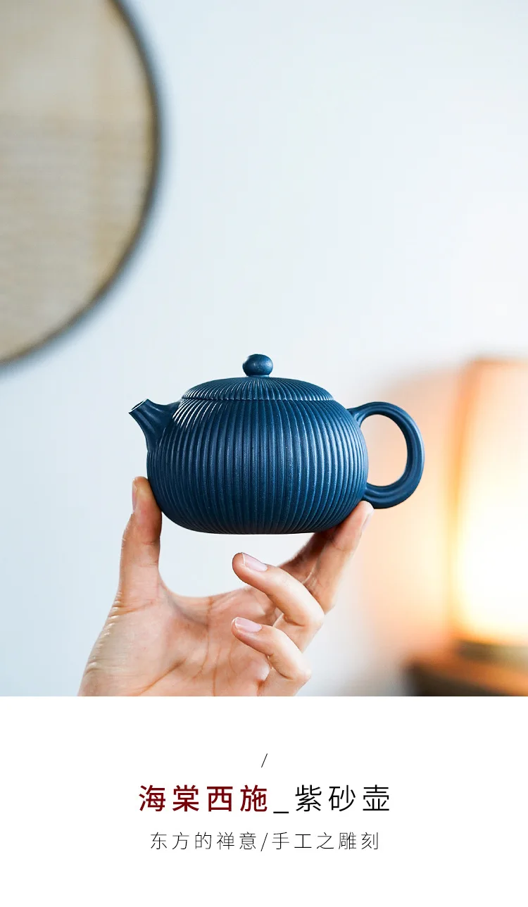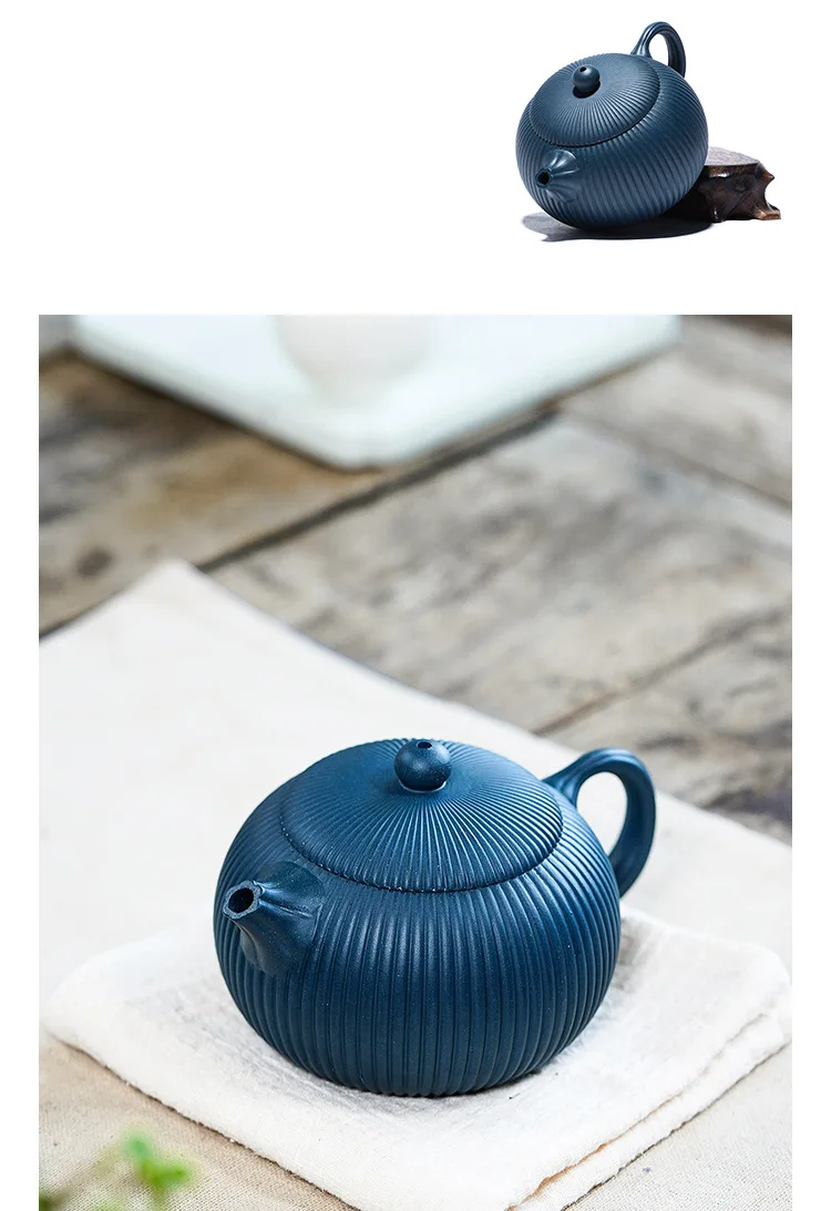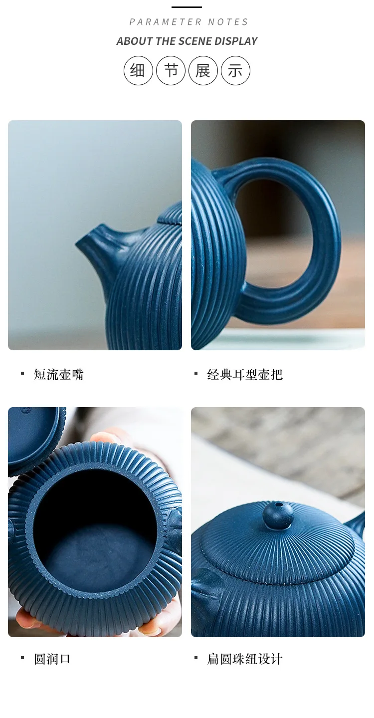 Chinese Yixing Asiatic Apple Tea Beauties Handmade Purple Grit Azure Clay Teapot Customized Handicraft Gifts Set