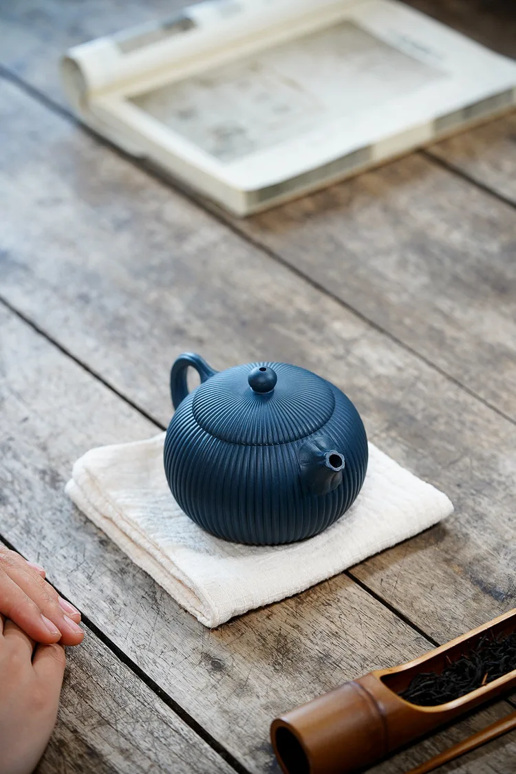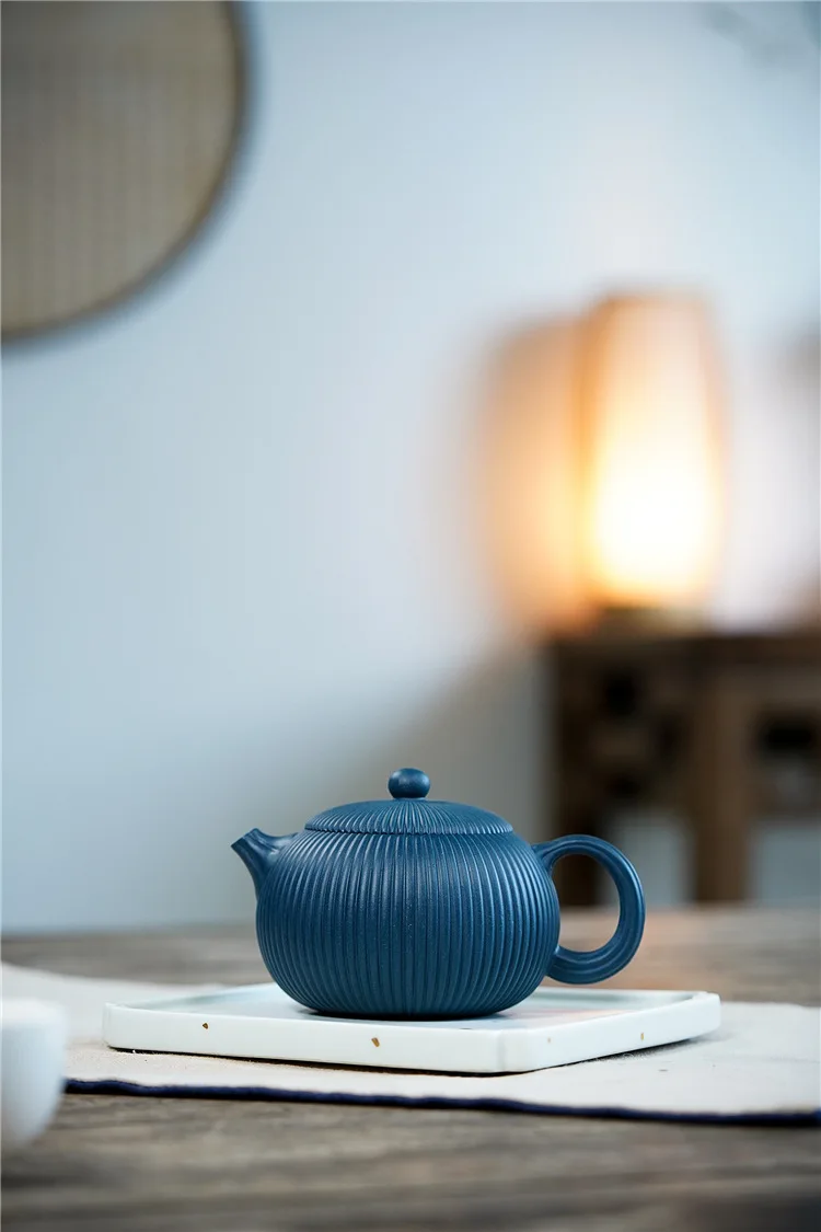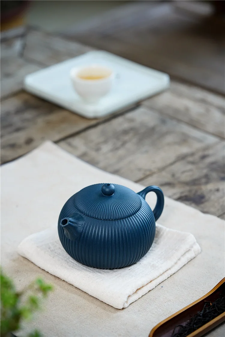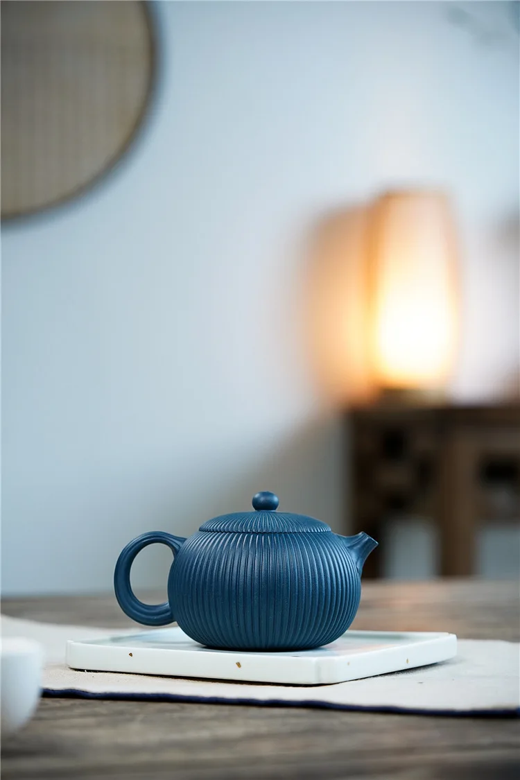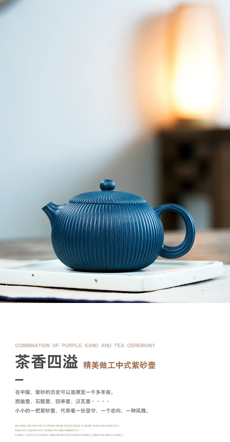 Chinese Yixing Asiatic Apple Tea Beauties Handmade Purple Grit Azure Clay Teapot Customized Handicraft Gifts Set