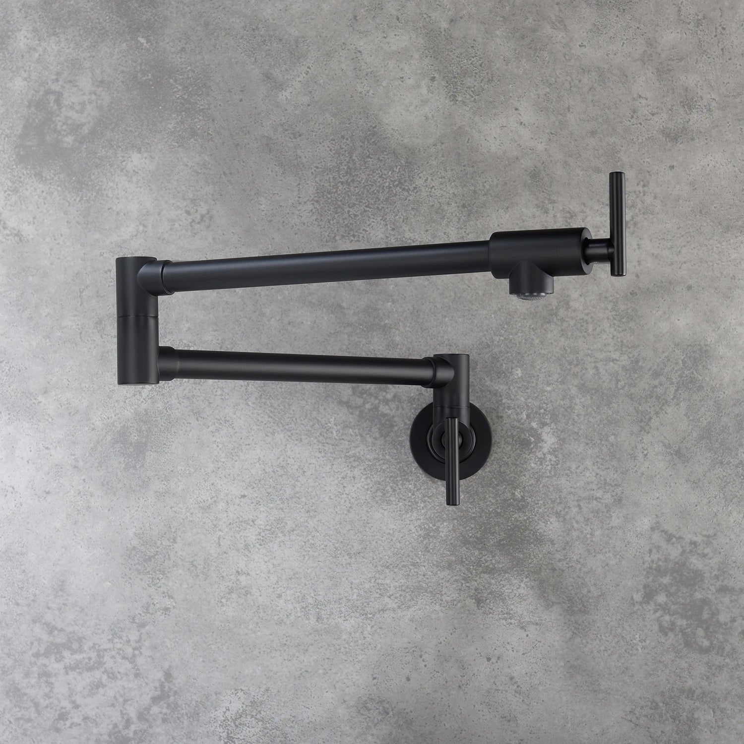 Contemporary Ceramic Kitchen Pot Filler Faucet 23.58\" Matte Black Brushed Brass Wall Mounted Oil Filter with 3.11\" Swivel