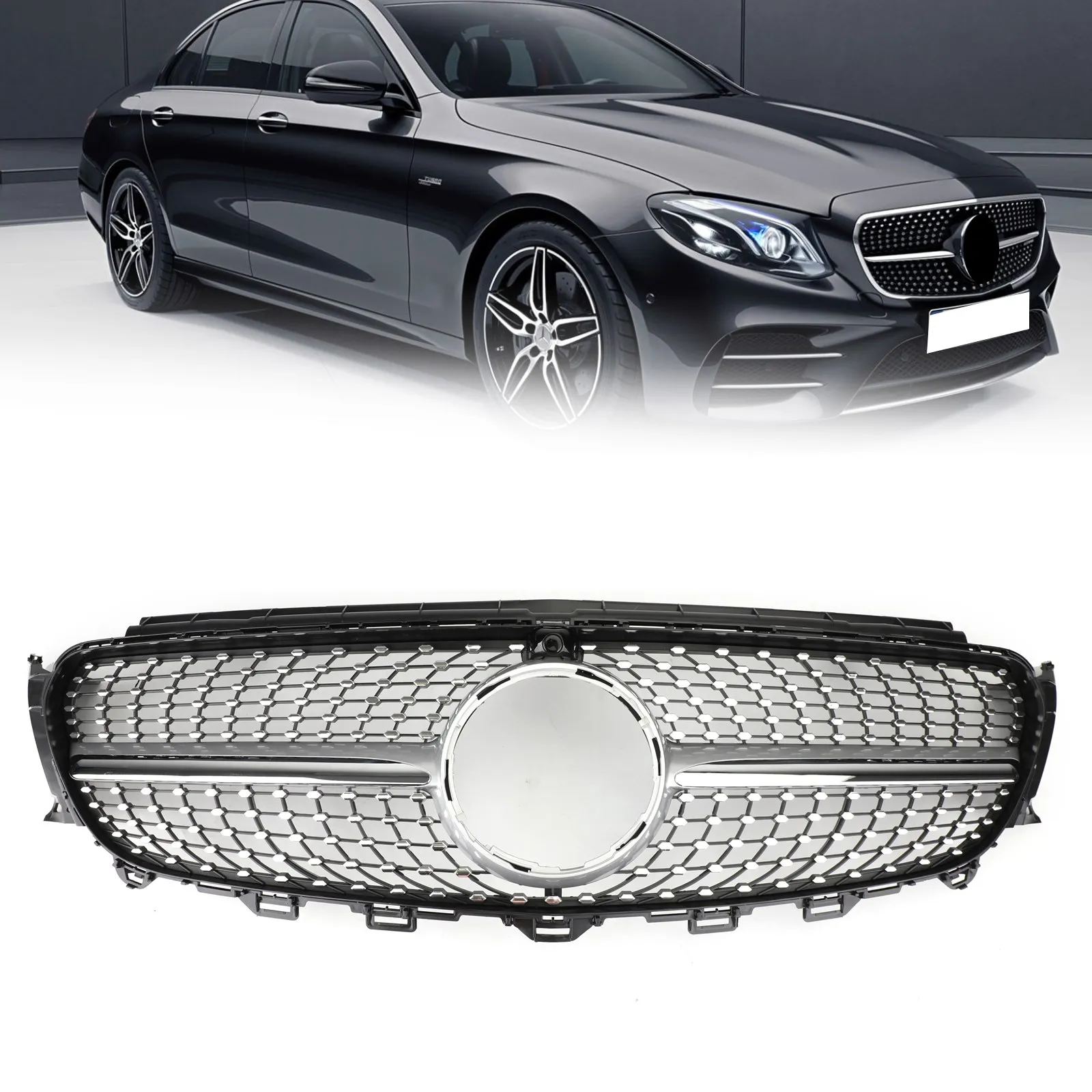 Diamond Silver Border Front Grille Grill for Mercedes Benz W213 E300 E400 2016-2019