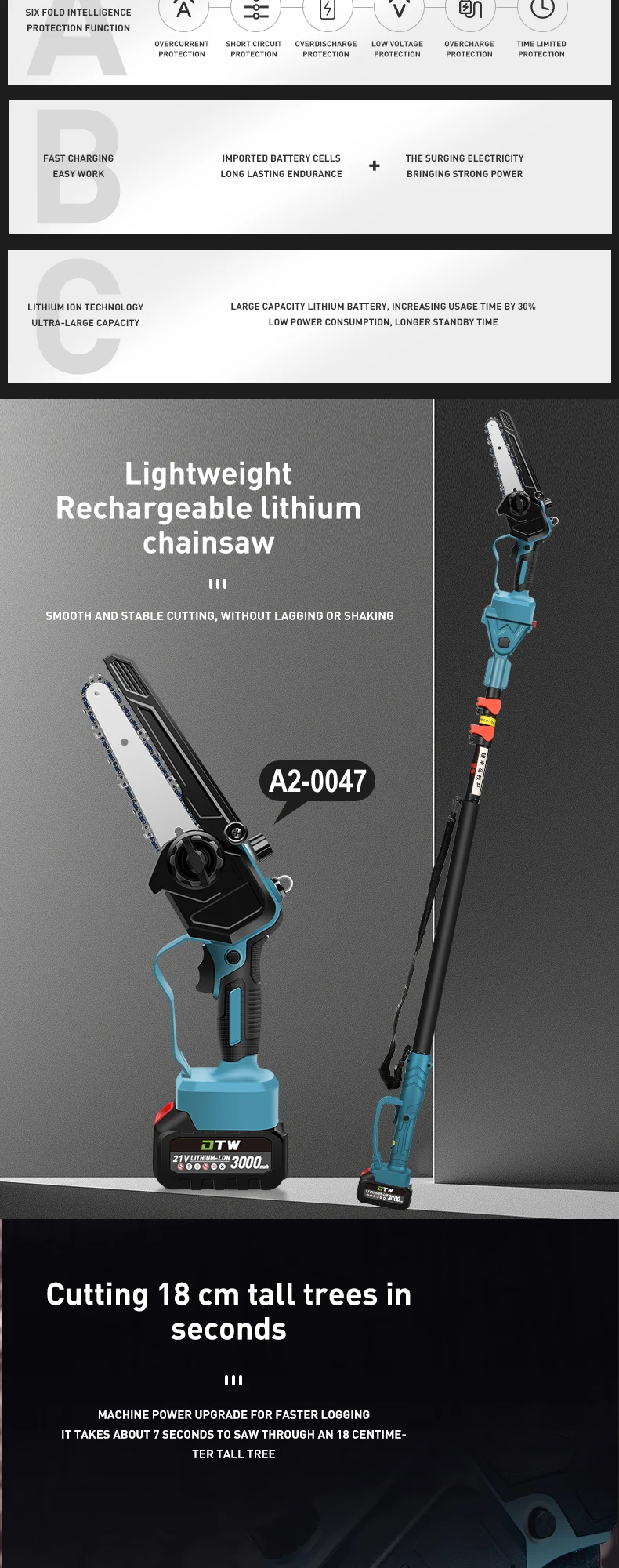 DTWA1-0021+A2-0048 Electric Pruner and Saw Kit with Extension bar