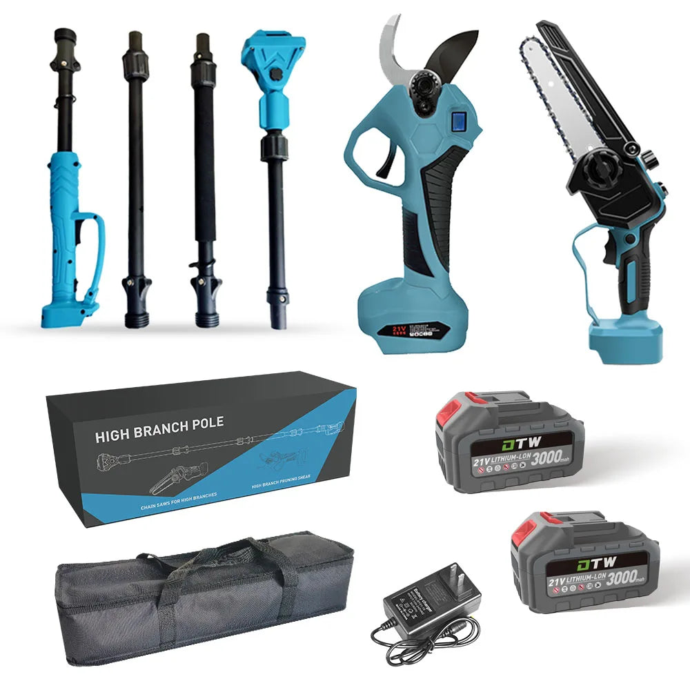DTWA1-0022+A2-0047 Garden Cordless Extension Pole Chainsaw High Pruning Shears Electric Telescopic Pole Scissors Pruners