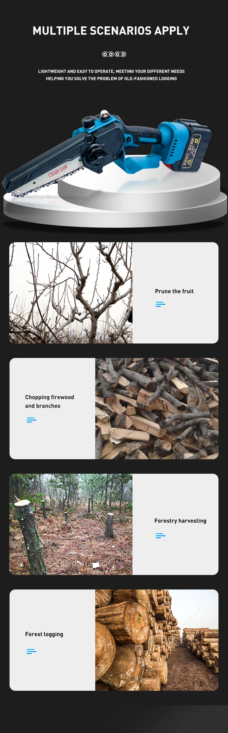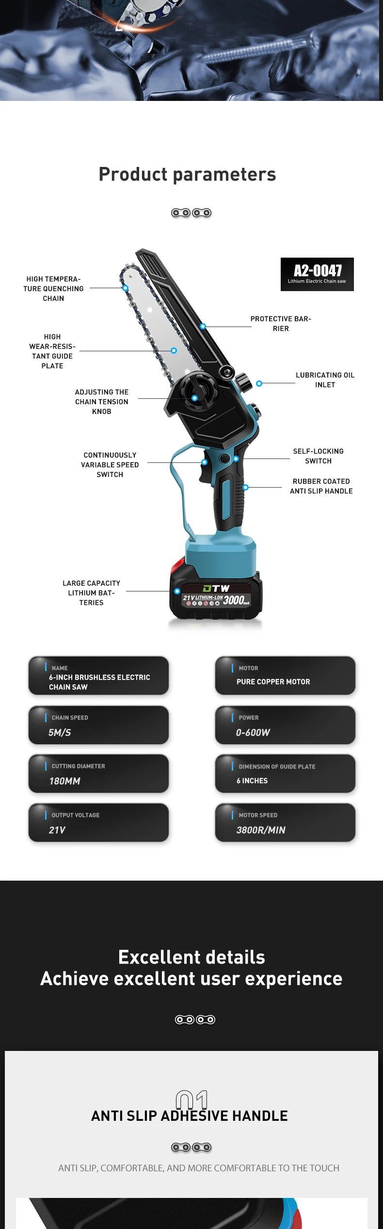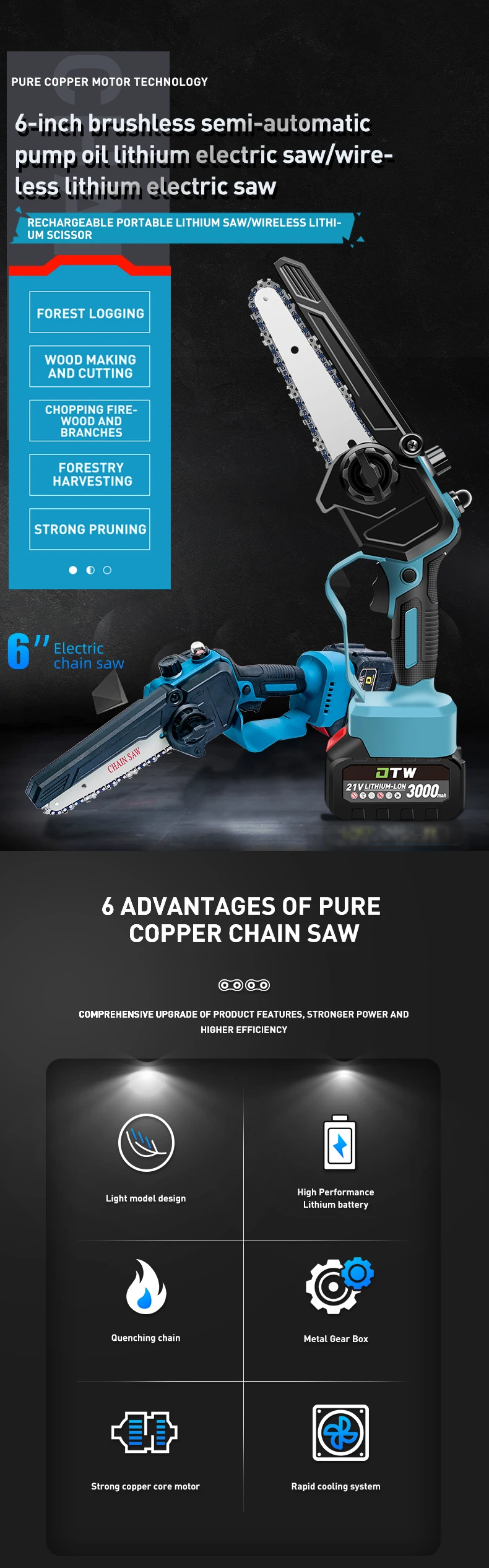 DTWA2-0047 Factory Direct 6 Inch Electric Chain Saw Rechargeable Woodworking Mini Chainsaw