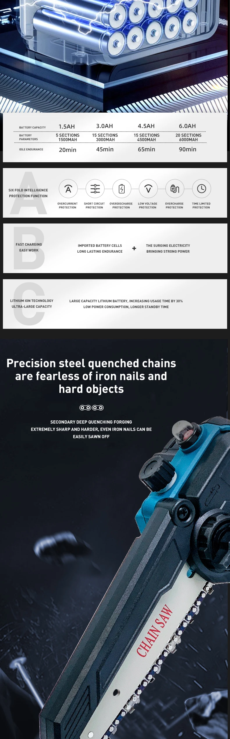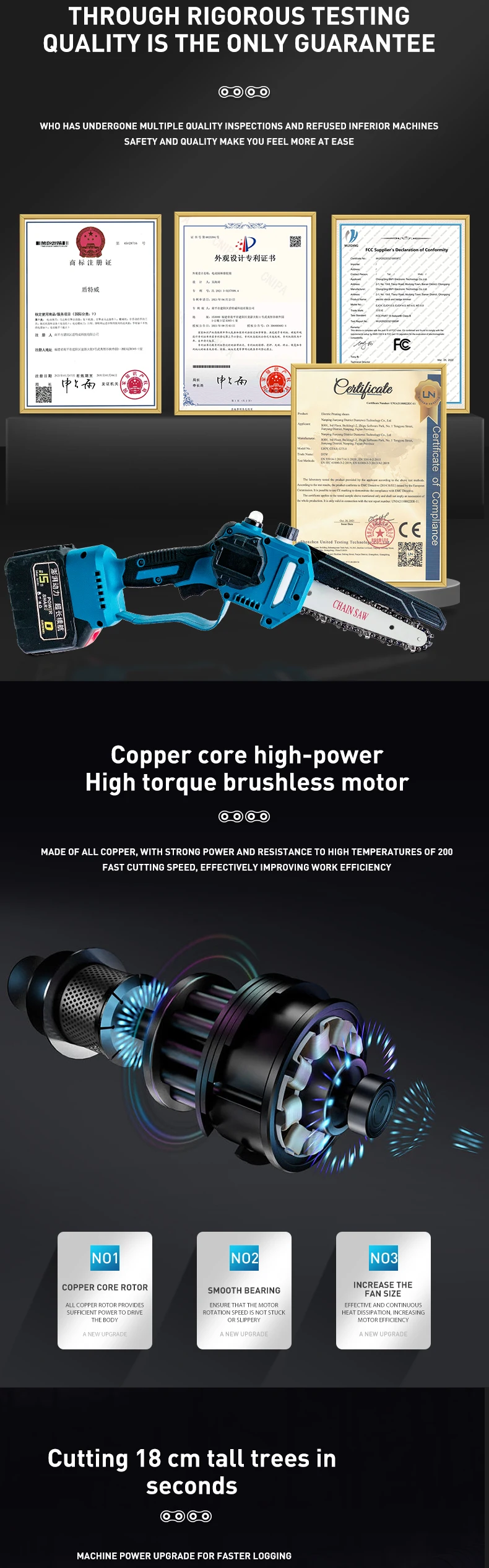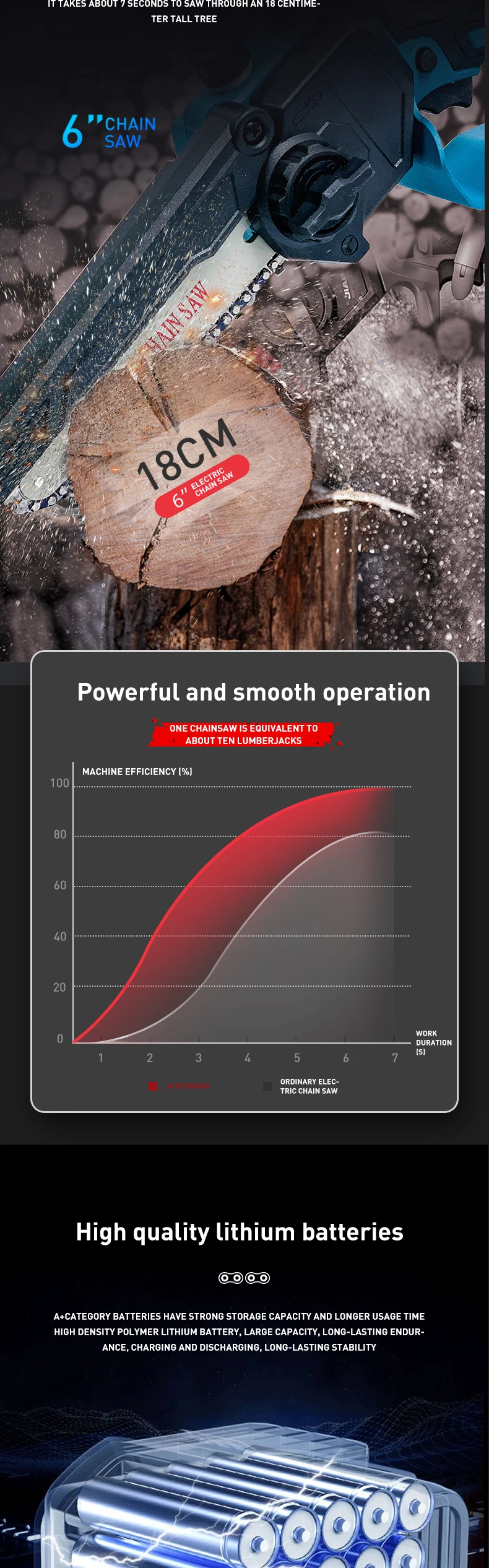 DTWA2-0047 Factory Direct 6 Inch Electric Chain Saw Rechargeable Woodworking Mini Chainsaw