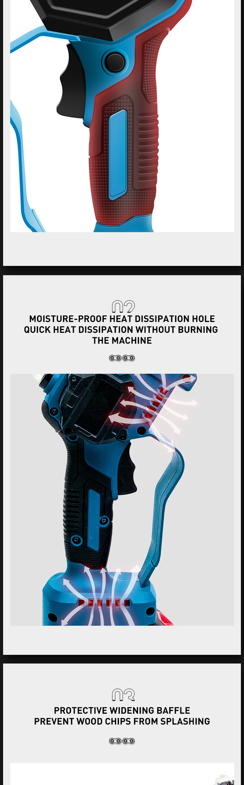 4.2) when there is dust and dirt inside or outside the power tool, please wipe it with a little alcohol, but avoid a large amount of alcohol or moisture penetrating into the bearing. The inside of the chain saw can not be fill water (the bearing will rust and damage)