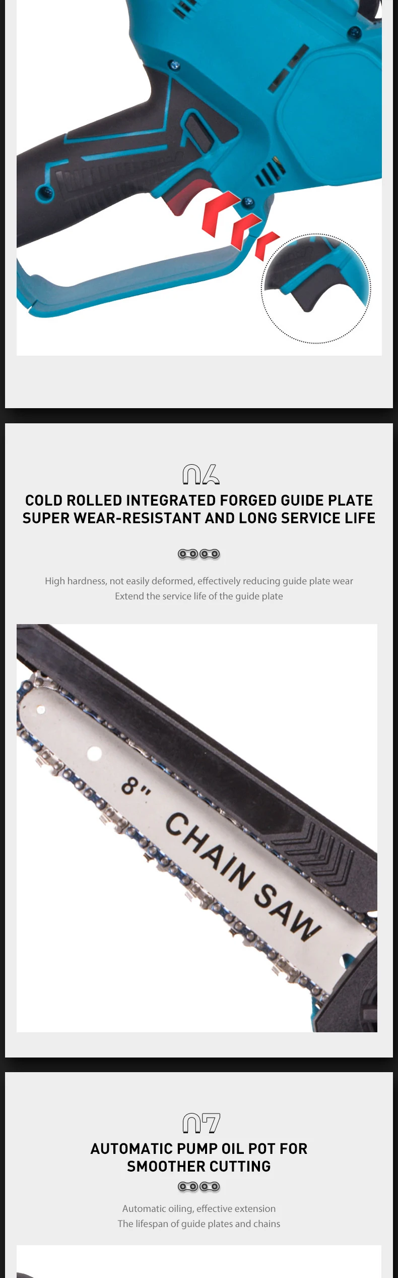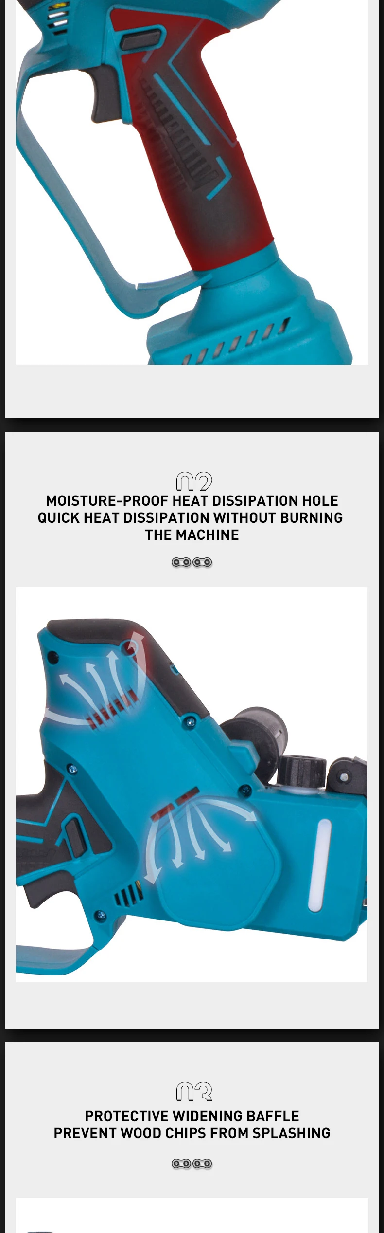 4.2) when there is dust and dirt inside or outside the power tool, please wipe it with a little alcohol, but avoid a large amount of alcohol or moisture penetrating into the bearing. The inside of the chain saw can not be fill water (the bearing will rust and damage)
