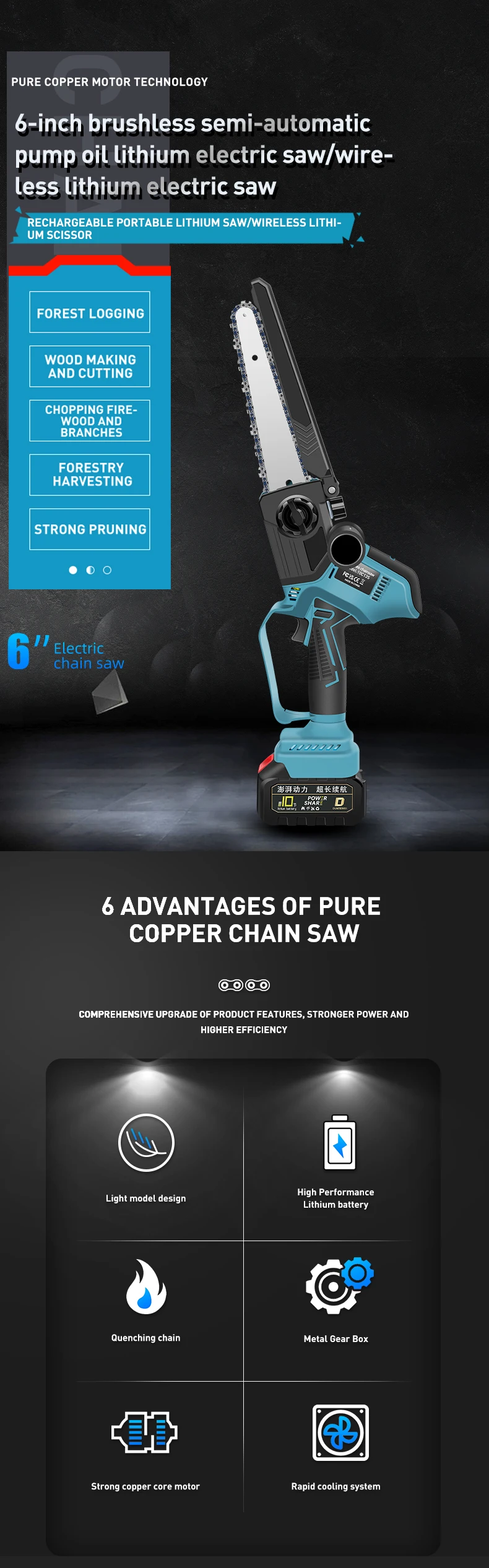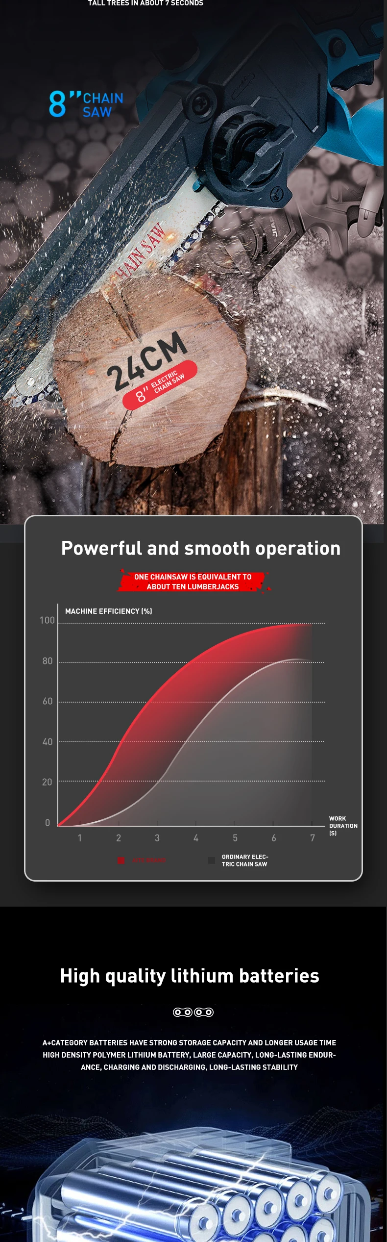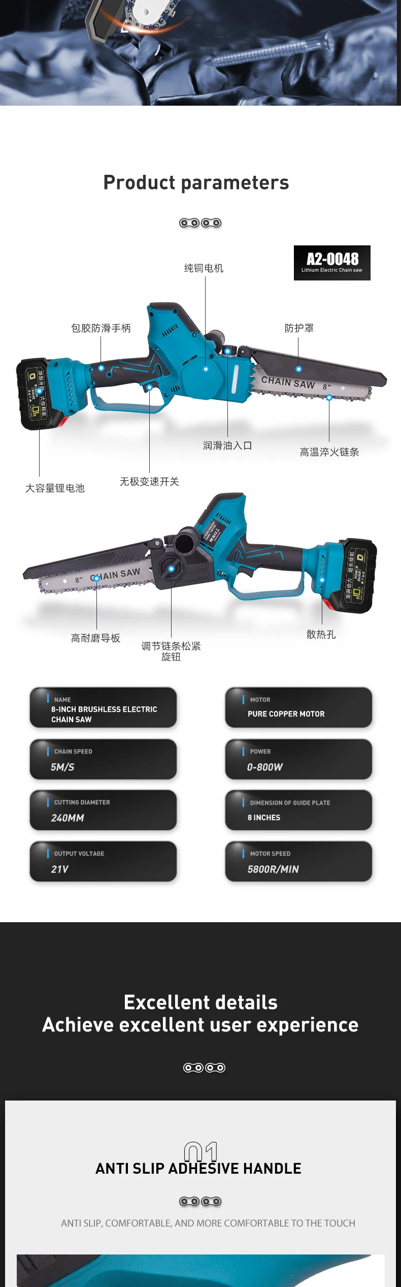 DTWA2-0048 Cordless 8-inch High Power Brushless Lithium-Ion Electric Chain Saw