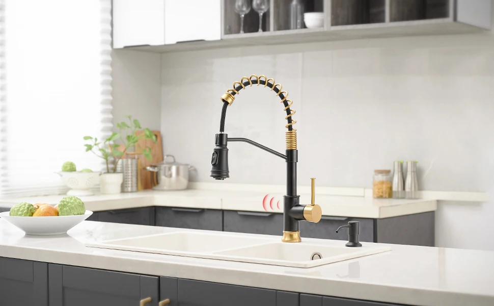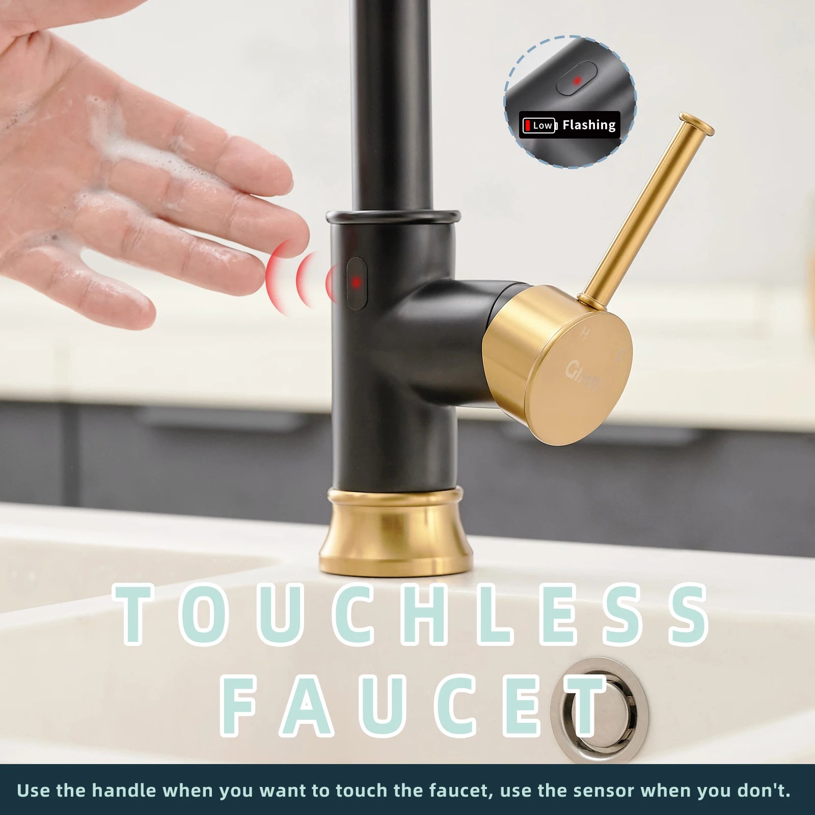 For FLG Gold Black Kitchen Faucet Smart Automatic Touchless Brass Tap Single Handle Pull-out Kitchen Sink Faucets Sensor Technol