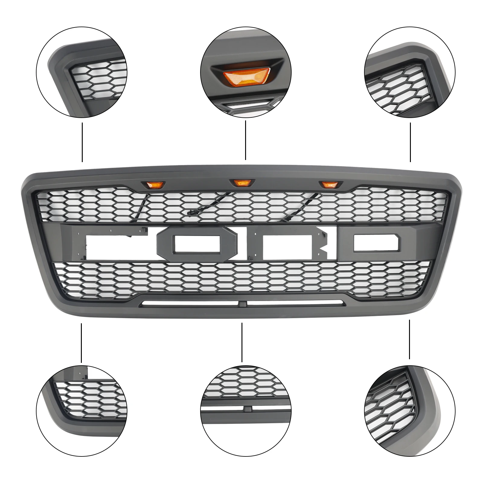 For Ford F150 2004-2008 Grill Raptor Style Front Grille with LED Light and Letter USA Stock Fast Delivery Car Grille