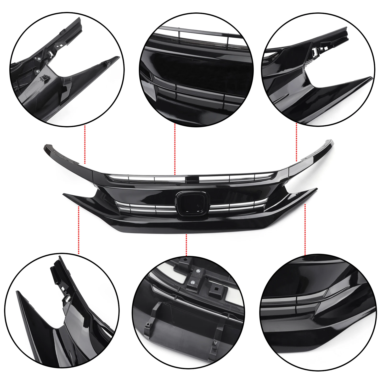 For Honda Civic Coupe Sedan 2016 2017 2018 Front Hood Grill Grille Eyelid With Letter US Stock