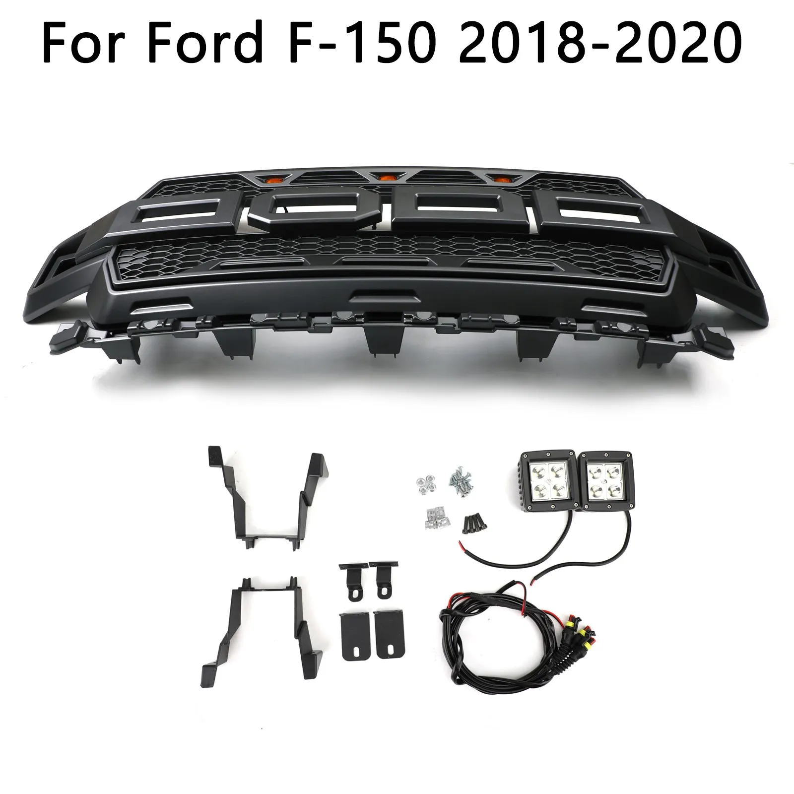 Honeycomb Grill Amber LED Raptor Style Grill Grille for Ford F150 F-150 2018 2019 2020 With Logo