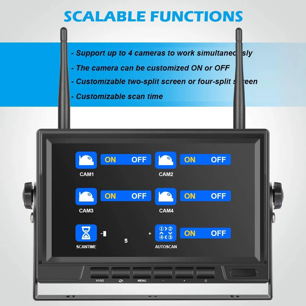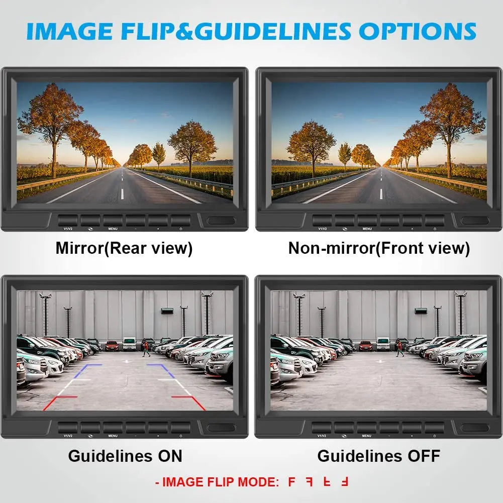 IPoster Digital Wireless Backup Camera Kit IP69 Waterproof Rear View Camera and 7in Split/Quad Screen with DVR