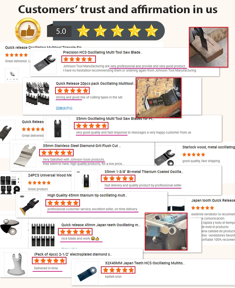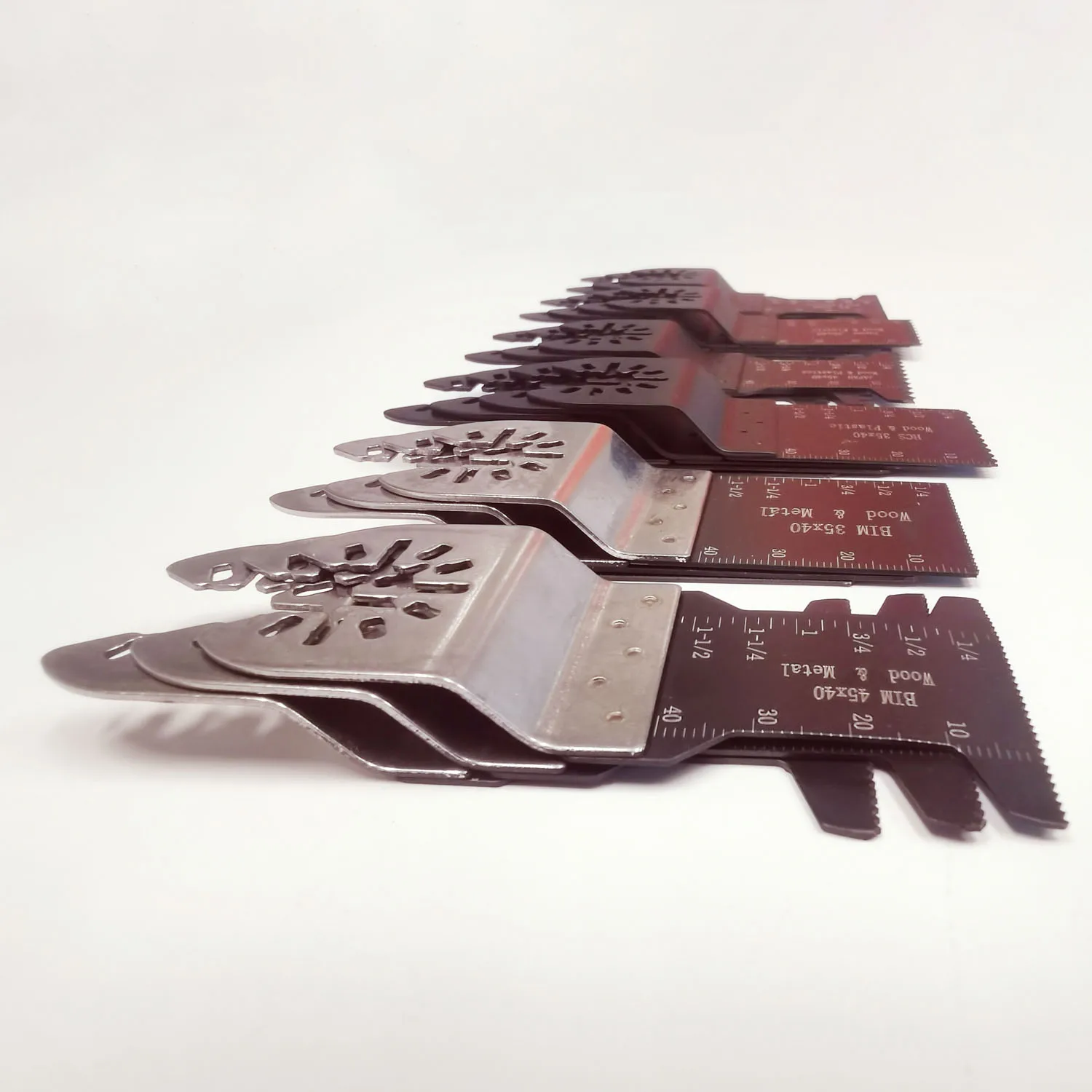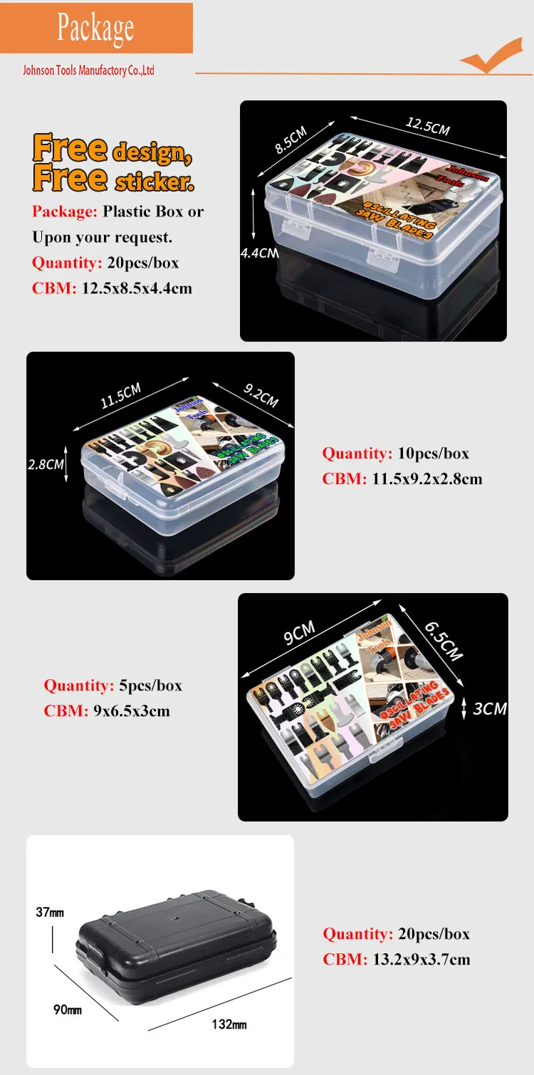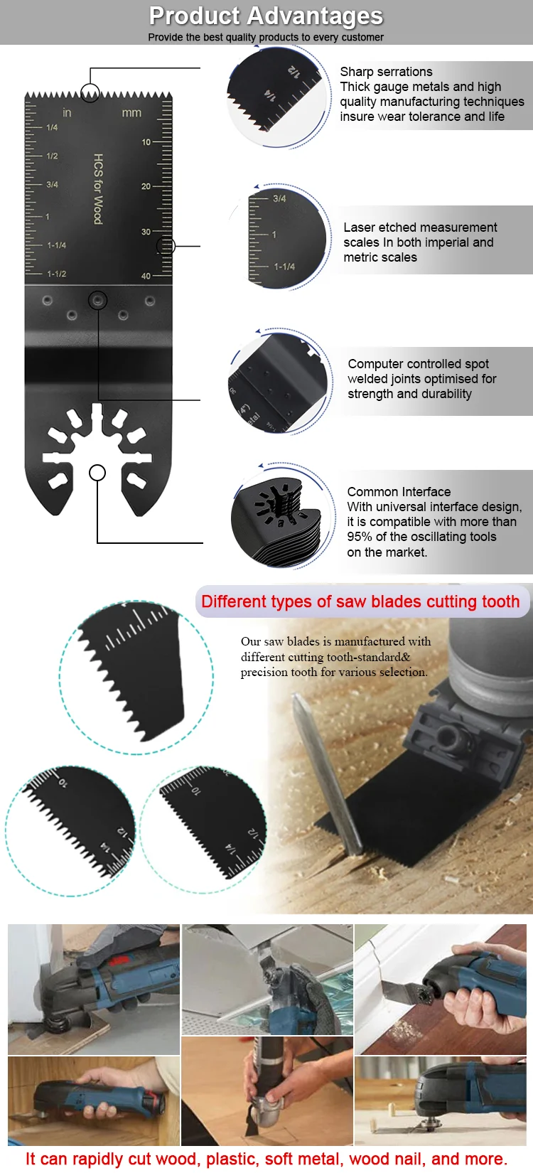 1)Univesal quick release system, fit to most machines of Bosch Fein Dremel Makita Milwaukee Einhell Skil. 2)One sets contains two size use mostly, for cutting wood, plastic pipe, nails, soft metals, never found the cut so easy! 3)Supreme quality, strict quality control, each Bi-Metal blades can cut over 100nos nails.