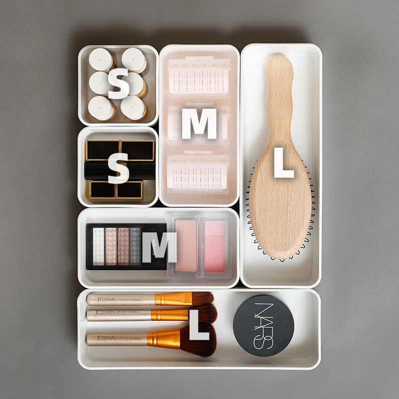 SHIMOYAMA White Plastic Small Compartment Stackable Desktop Storage Box Organizer