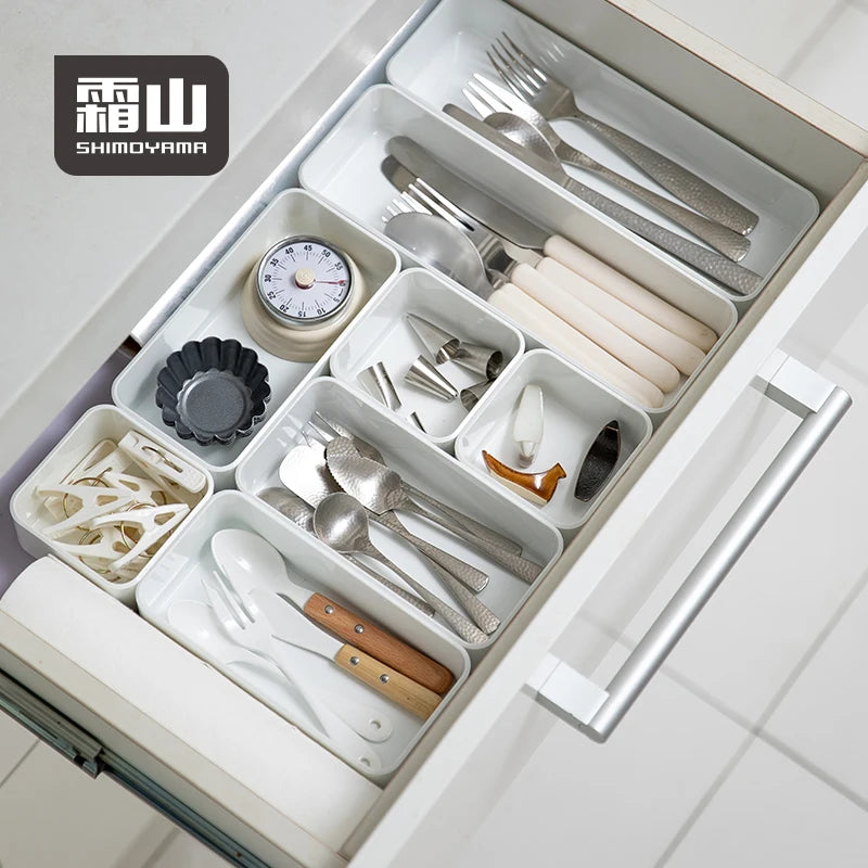 SHIMOYAMA White/Black Plastic Small Multifunctional Kitchen Storage and Tableware Drawer Divider Organizer for Kitchen