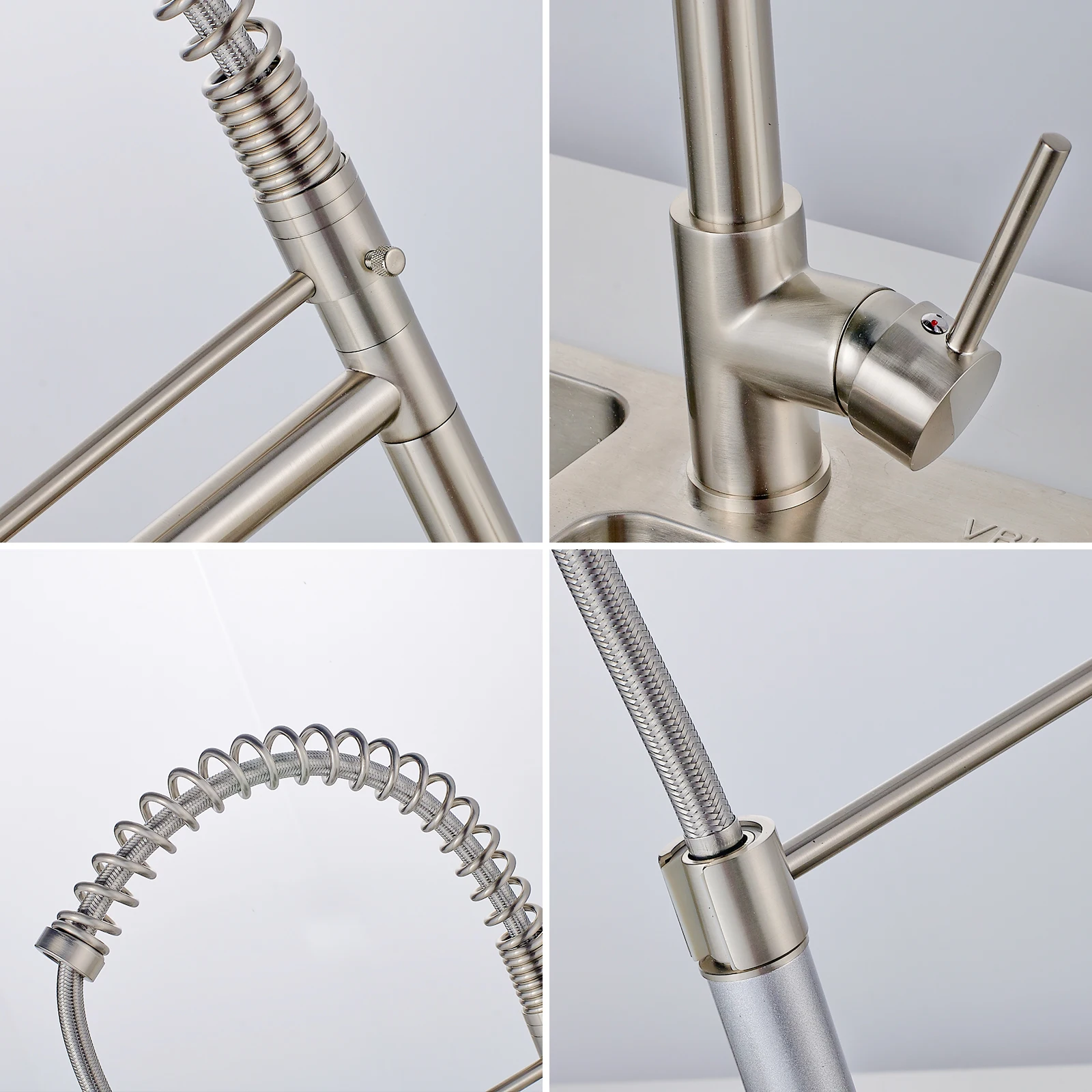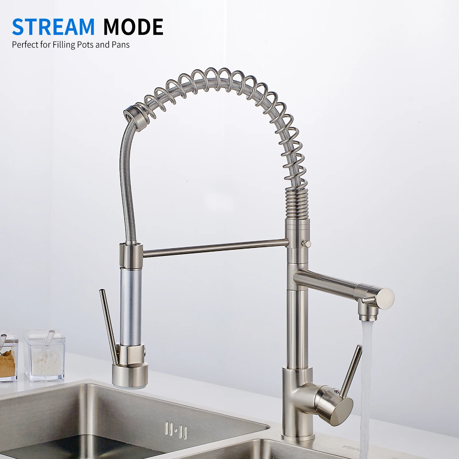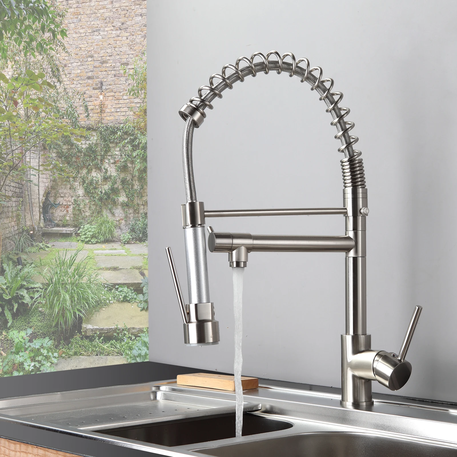 Single Lever Pull down Kitchen Faucet Brass Water Mixer Tap Sprayer with Single Hole Installation for Kitchen Sink Faucets