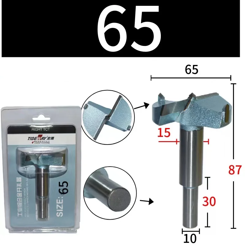 Tideway Industries Grade TCT Hole Saw Wood Hinge Drill Bit Carbide Tungsten Dole Drill, diameter - 65