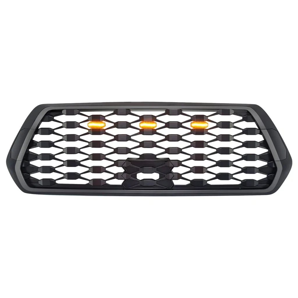 US Stock Front Mesh Matte Black Grille With Amber Lights for 2016-2021 Toyota Tacoma