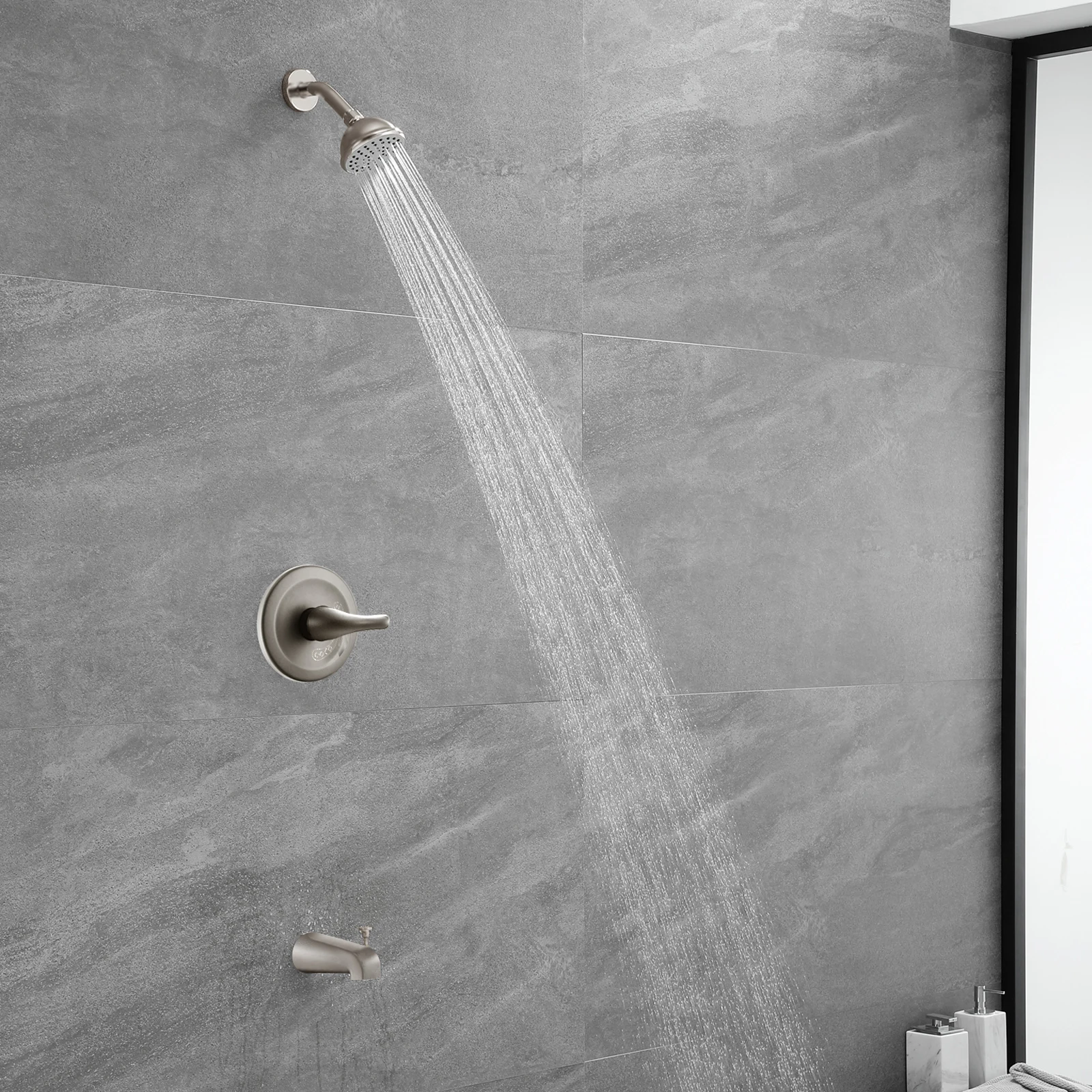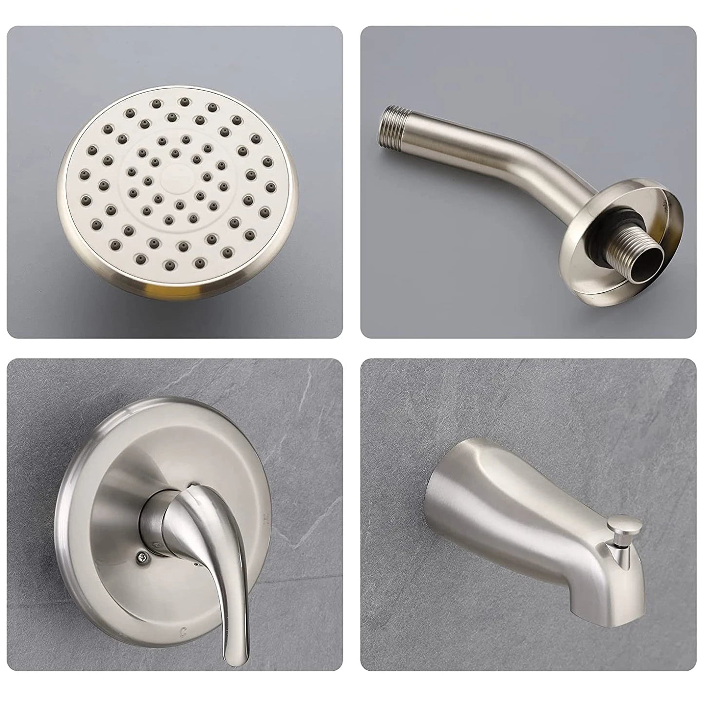 BRUSHED NICKEL TUB SHOWER FAUCET SET for an modern appearance and decorating style.
