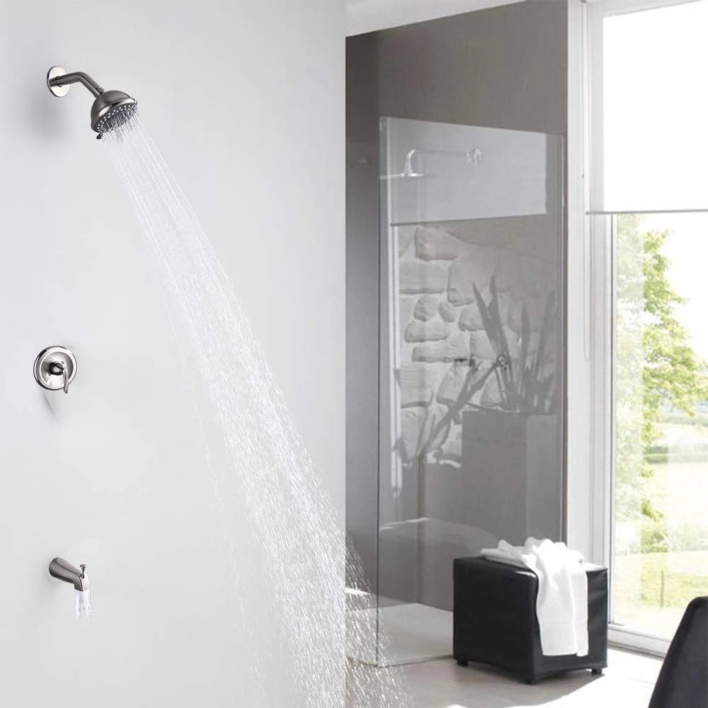AQUACUBIC SHOWER FAUCET SET: Comes with a 4-inch shower head, 5-inch diverter bathtub spout, valve trim, rough-in valve. Mounting hardware accessories are included for easy installation.