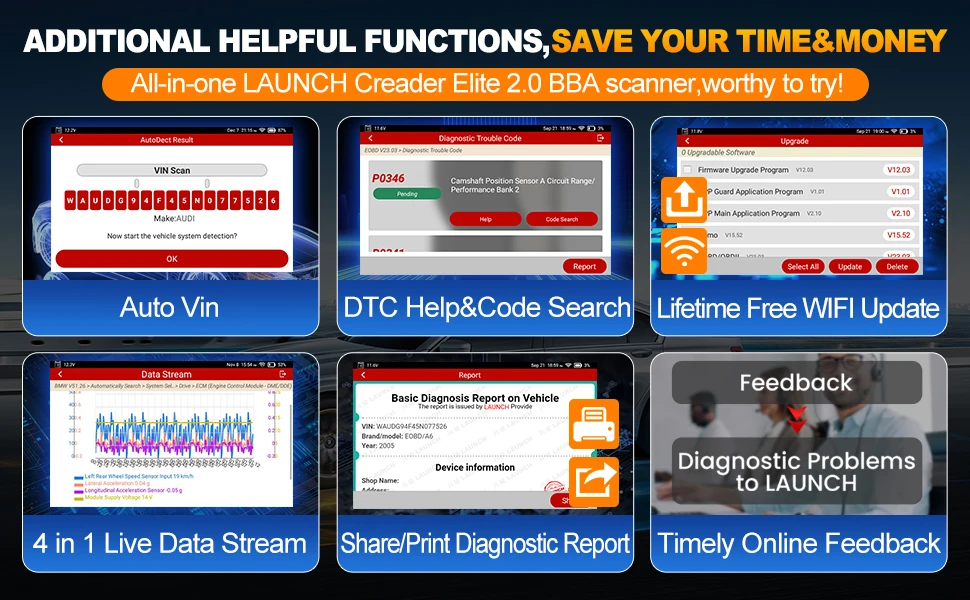 USA EU Warehouse LAUNCH Creader Elite 2.0 for BBA Full System 12V Auto Diagnostic Tool OBD2 EOBD Car Scanner