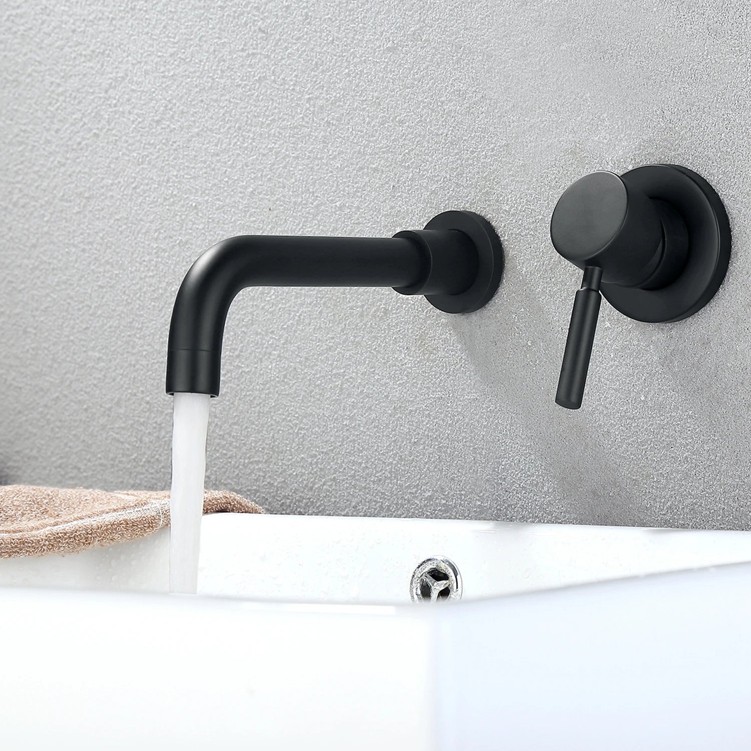 Wall Mounted Hot Cold Water Supply Matt Black Finish Brass Single Handle Wash Basin Mixer